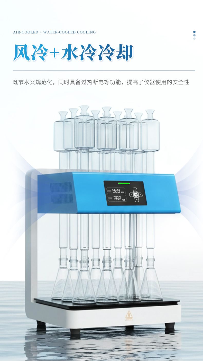 化學(xué)需氧量(COD)智能回流消解器遵循了國家標(biāo)準(zhǔn)《HJ828-2017 水質(zhì) 化學(xué)需氧量的測定 重鉻酸鹽法》的基本原則,保證了回流加熱微沸2小時(shí)的消解操作,試劑溶液的配制和加入量與國標(biāo)法一致,確保可靠準(zhǔn)確的分析結(jié)果。