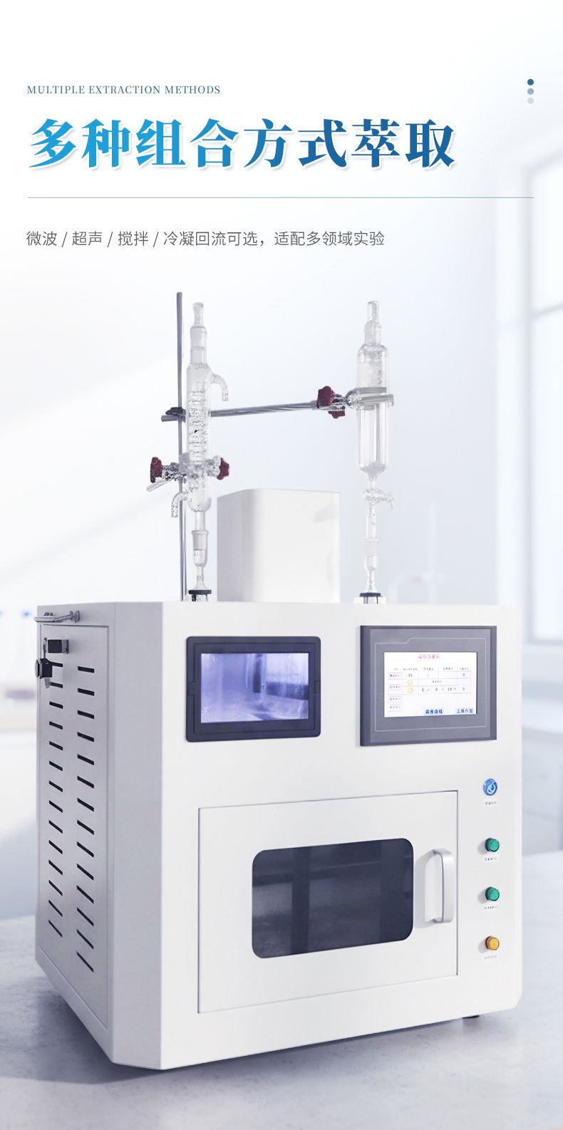 ●功能組合:可任意選擇微波、超聲波、磁力攪拌、冷凝回流多種組合方式