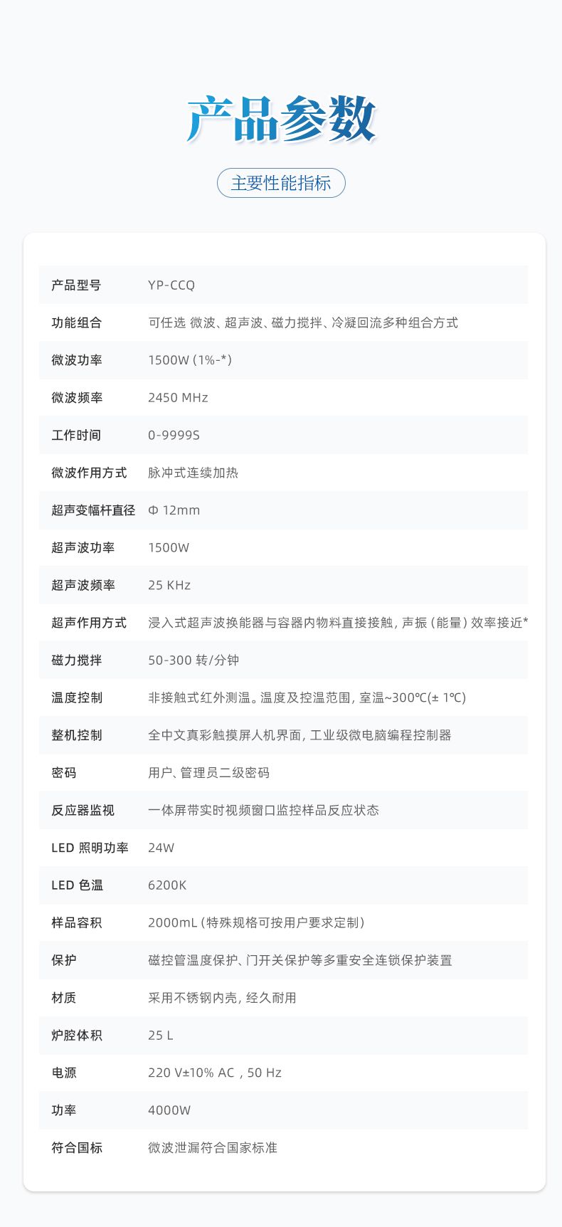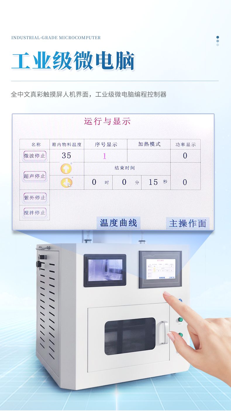 【產(chǎn)品簡(jiǎn)介】微波功率:1500W(1%-*);微波頻率:2450 MHz;工作時(shí)間:0-9999S