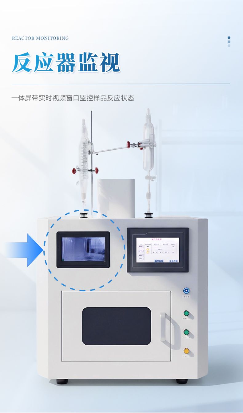 ●反應(yīng)器監(jiān)視:一體屏帶實(shí)時(shí)視頻窗口監(jiān)控樣品反應(yīng)狀態(tài);