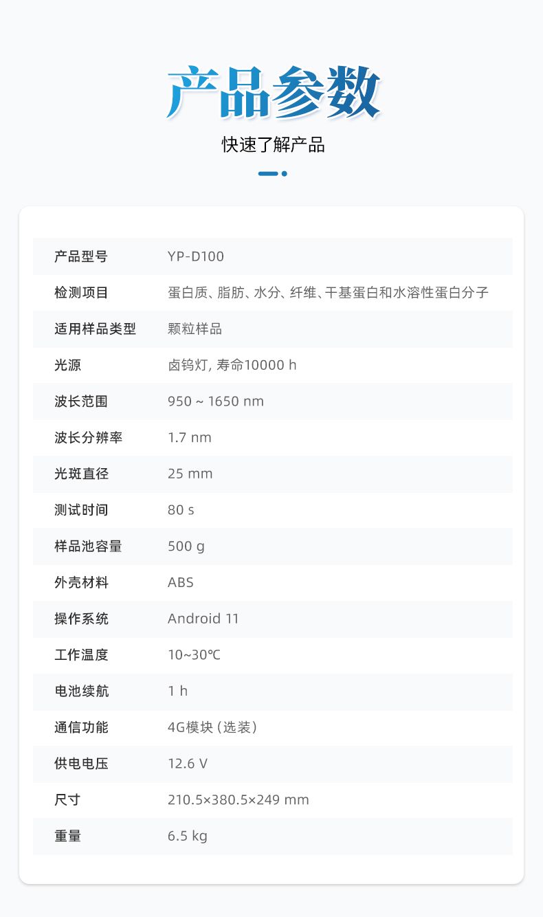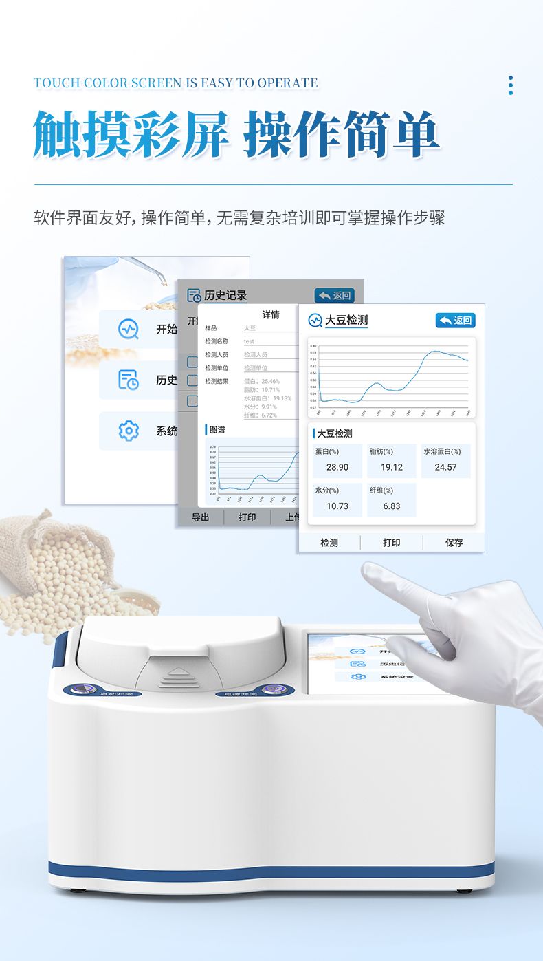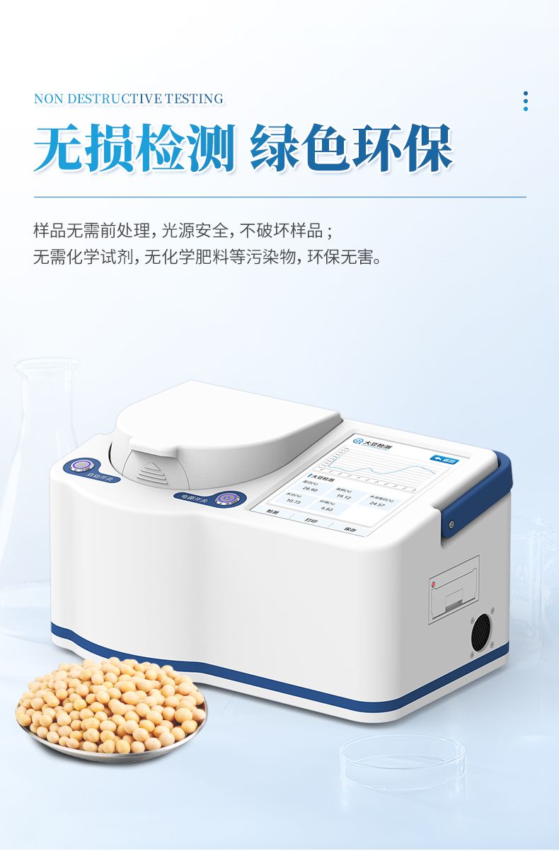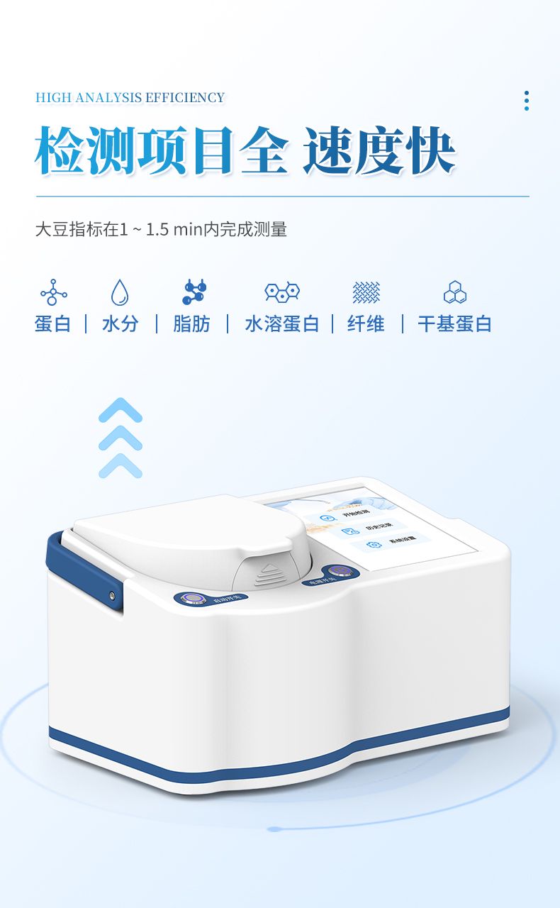 便攜式近紅外大豆蛋白儀采用先進的近紅外光譜技術(shù),可同時無損檢測大豆中的蛋白質(zhì)、脂肪、水溶性蛋白、干基蛋白、纖維和水分等指標。分析過程無需復雜前處理,數(shù)十秒內(nèi)即可得出結(jié)果,極大提升了檢測效率,降低了時間和人力成本。該儀器操作智能簡便,結(jié)果穩(wěn)定可靠,是糧油加工、食品檢測、育種研發(fā)和貿(mào)易收購等領(lǐng)域進行原料驗收、過程控制與品質(zhì)評定的理想工具。