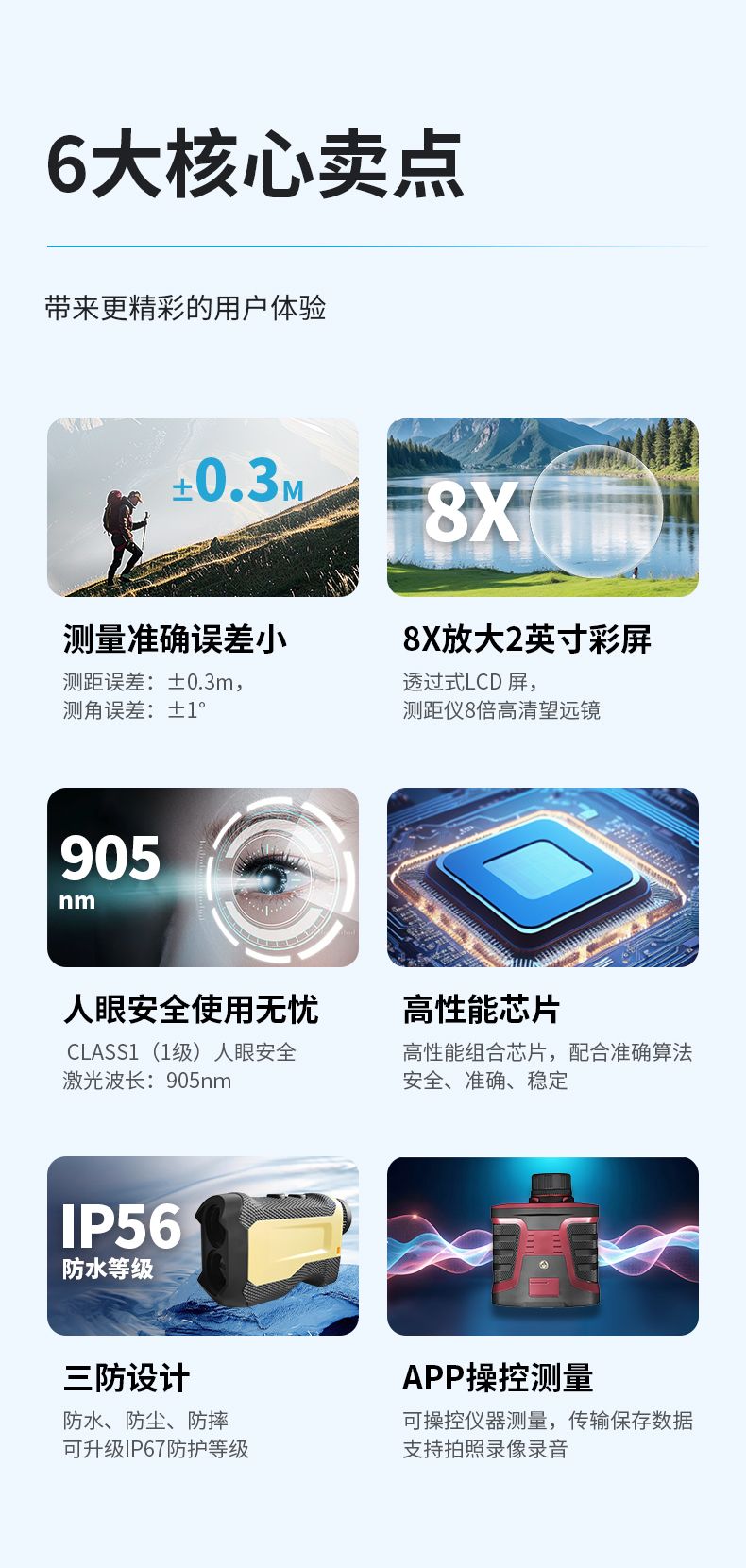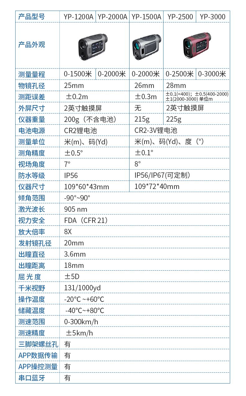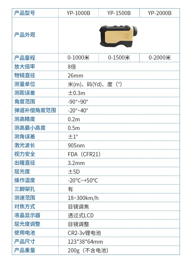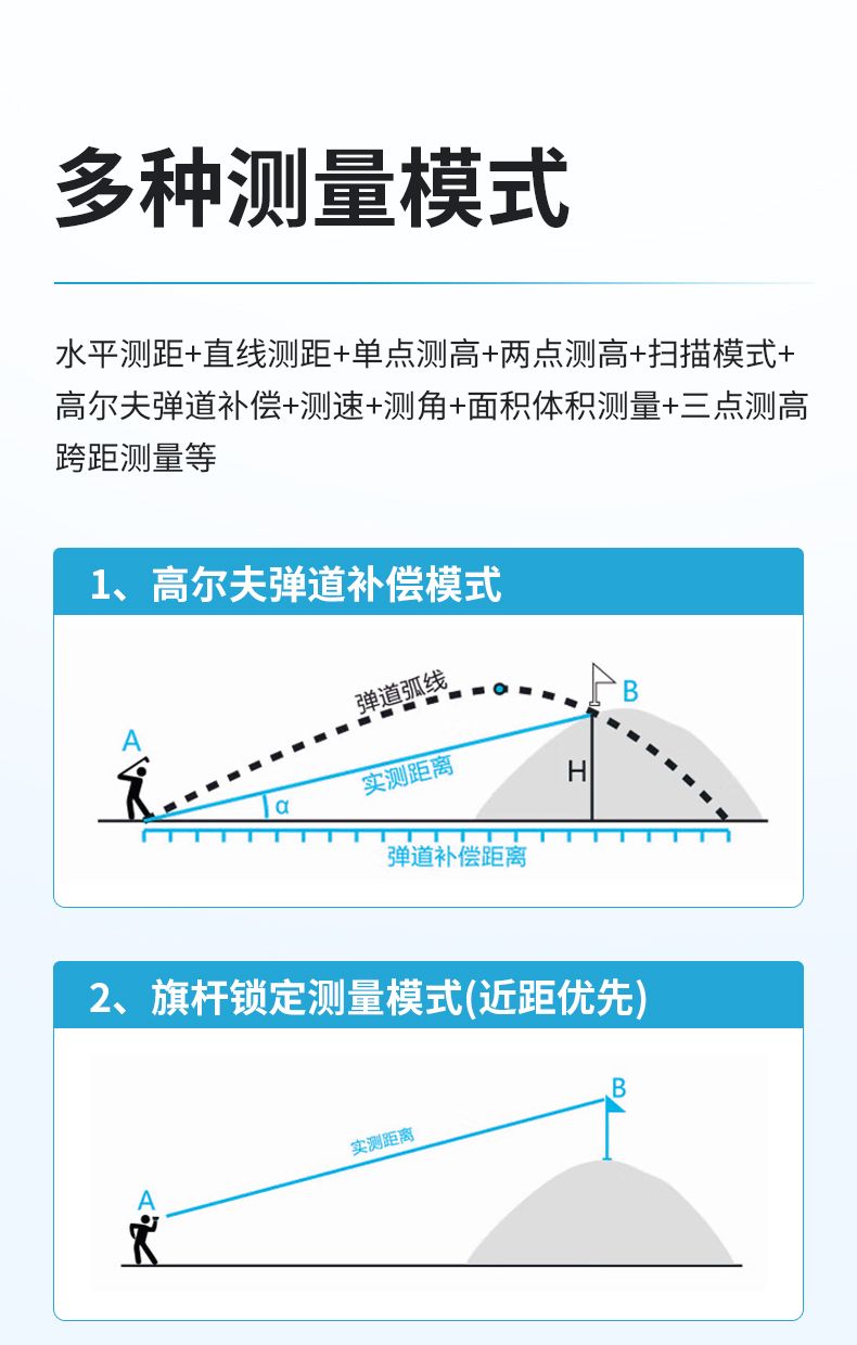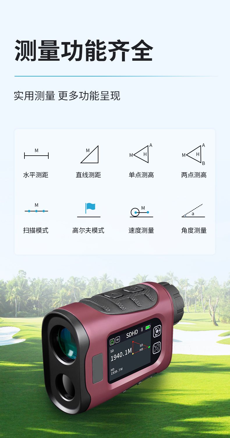 產(chǎn)品功能:測距/測角/測速/高爾夫彈道距離/兩點測高