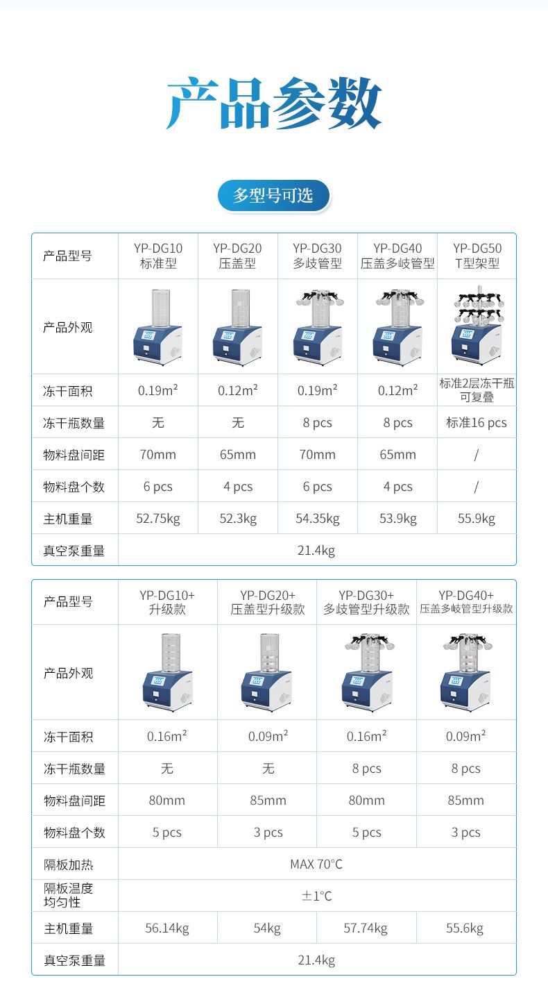 (1) 凍干面積最大0.19m2(普通型),物料盤尺寸φ200mm。支持?jǐn)U展多歧管凍干瓶、茄型瓶,進一步增大凍干面積。(配備多歧管鐘罩)
