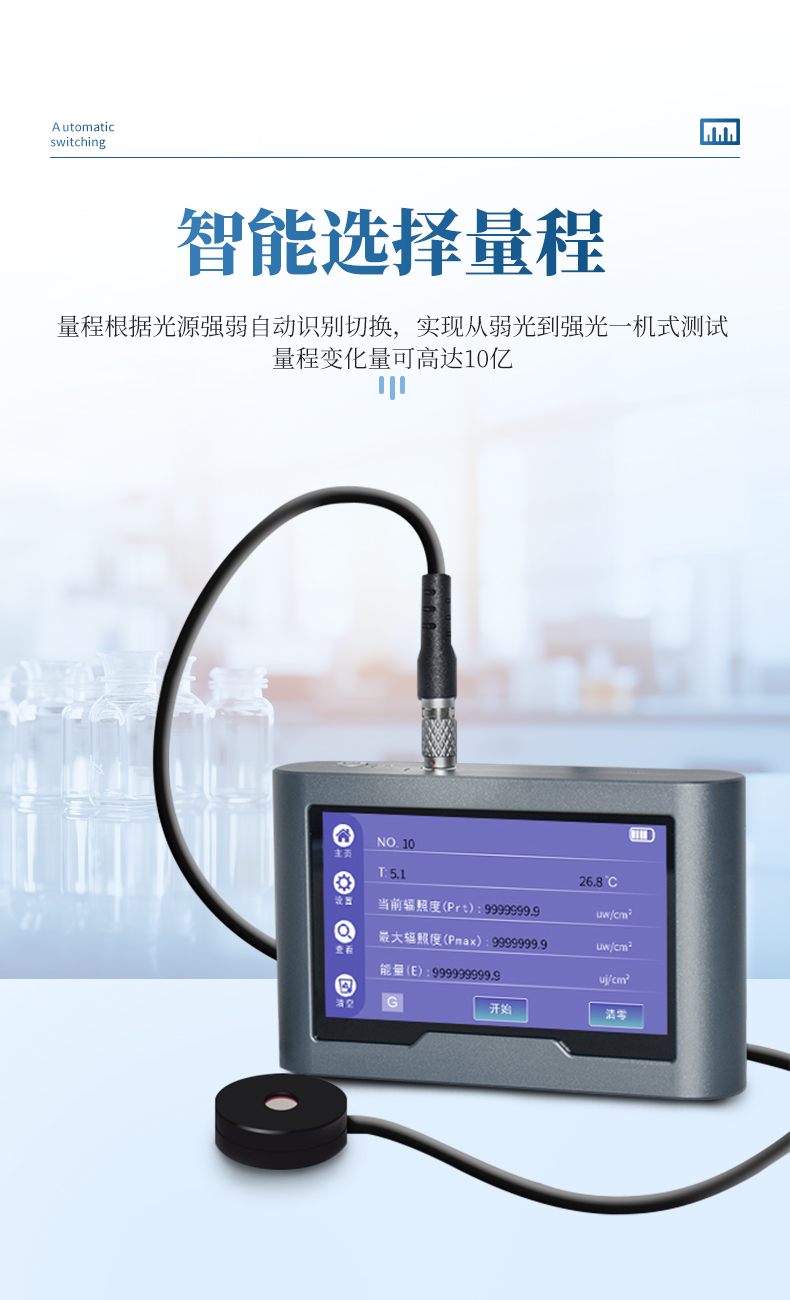 4.智能選擇量程,儀器可根據(jù)光源強(qiáng)弱自主切換量程;