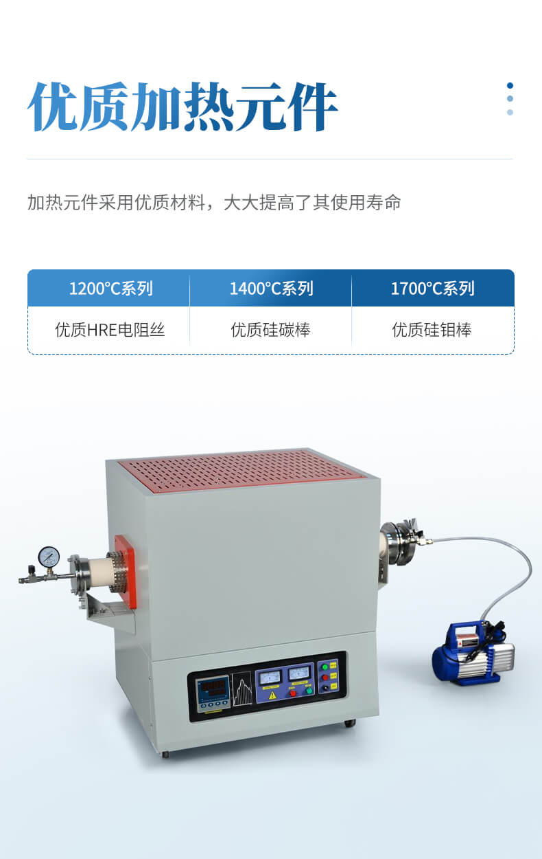 2、加熱元件采用優(yōu)質(zhì)HRE電阻絲,大大提高了其使用壽命;