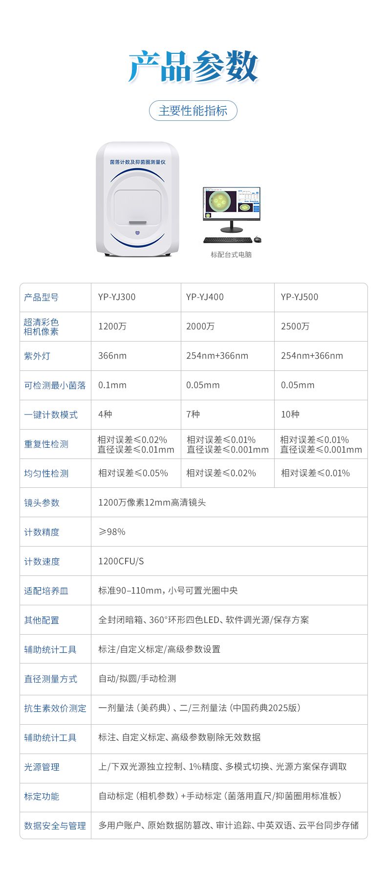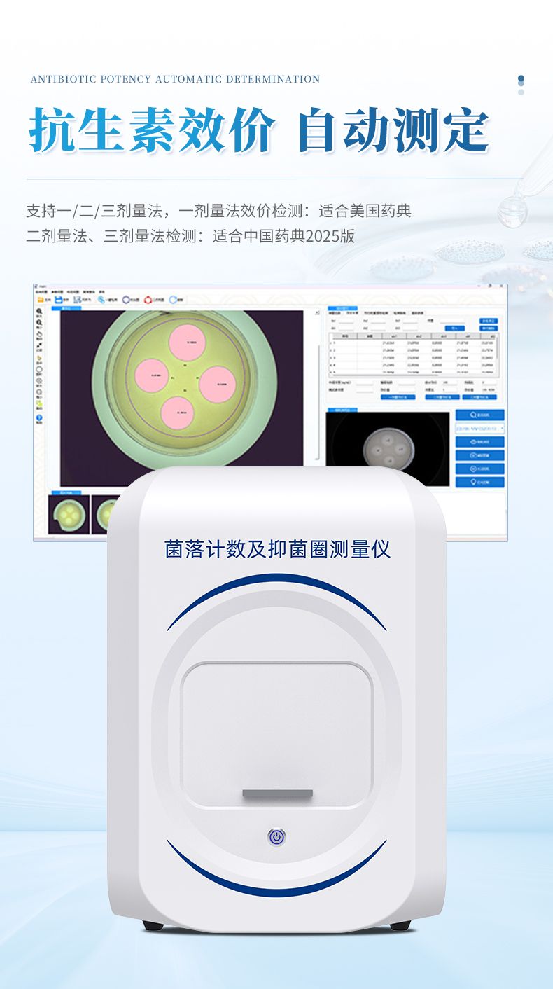 本產(chǎn)品是一款集圖像采集、數(shù)據(jù)處理與統(tǒng)計(jì)分析于一體的菌落計(jì)數(shù)及抑菌圈測(cè)量?jī)x,廣泛應(yīng)用于食品、藥品、化妝品、環(huán)境監(jiān)測(cè)、醫(yī)療衛(wèi)生、科研院校等領(lǐng)域。儀器采用先進(jìn)的數(shù)字圖像處理技術(shù),具備熒光菌識(shí)別、抑菌圈測(cè)量及效價(jià)測(cè)定和殺菌功能,可快速精準(zhǔn)完成培養(yǎng)皿內(nèi)菌落的測(cè)量分析、抑菌圈測(cè)量及抗生素效價(jià)測(cè)定,大幅提升實(shí)驗(yàn)效率,有效降低人工操作誤差。