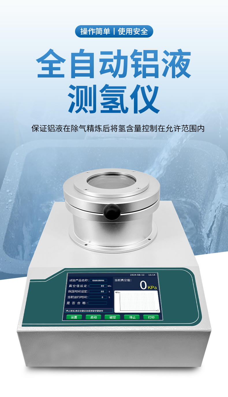 由于鋁液是在真空中凝固,其整個(gè)凝固過程不受外界空氣的影響,測得試樣的含氫量就是坩堝取樣時(shí)的含氫量。設(shè)備具有檢測準(zhǔn)確、運(yùn)行可靠、易于操作、維護(hù)簡便等優(yōu)點(diǎn),是鋁制件廠檢測含氫量的理想設(shè)備。