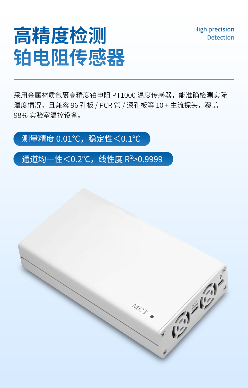 YP-MCT溫度巡檢儀是為實(shí)驗(yàn)室溫控設(shè)備和儀器專門設(shè)計(jì)開發(fā)的實(shí)時(shí)高精度溫度校準(zhǔn)檢驗(yàn)設(shè)備。系統(tǒng)采用高精度PT鉑電阻溫度傳感器,配合高線性,高響應(yīng)速度以及低溫漂的信號(hào)采集系統(tǒng),能實(shí)時(shí)對(duì)PCR分析儀,水浴鍋,培養(yǎng)箱等設(shè)備的溫度控制精度,均一性,穩(wěn)定性以及升降溫速度進(jìn)行監(jiān)控,是實(shí)驗(yàn)室控溫設(shè)備的理想檢測(cè)工具。