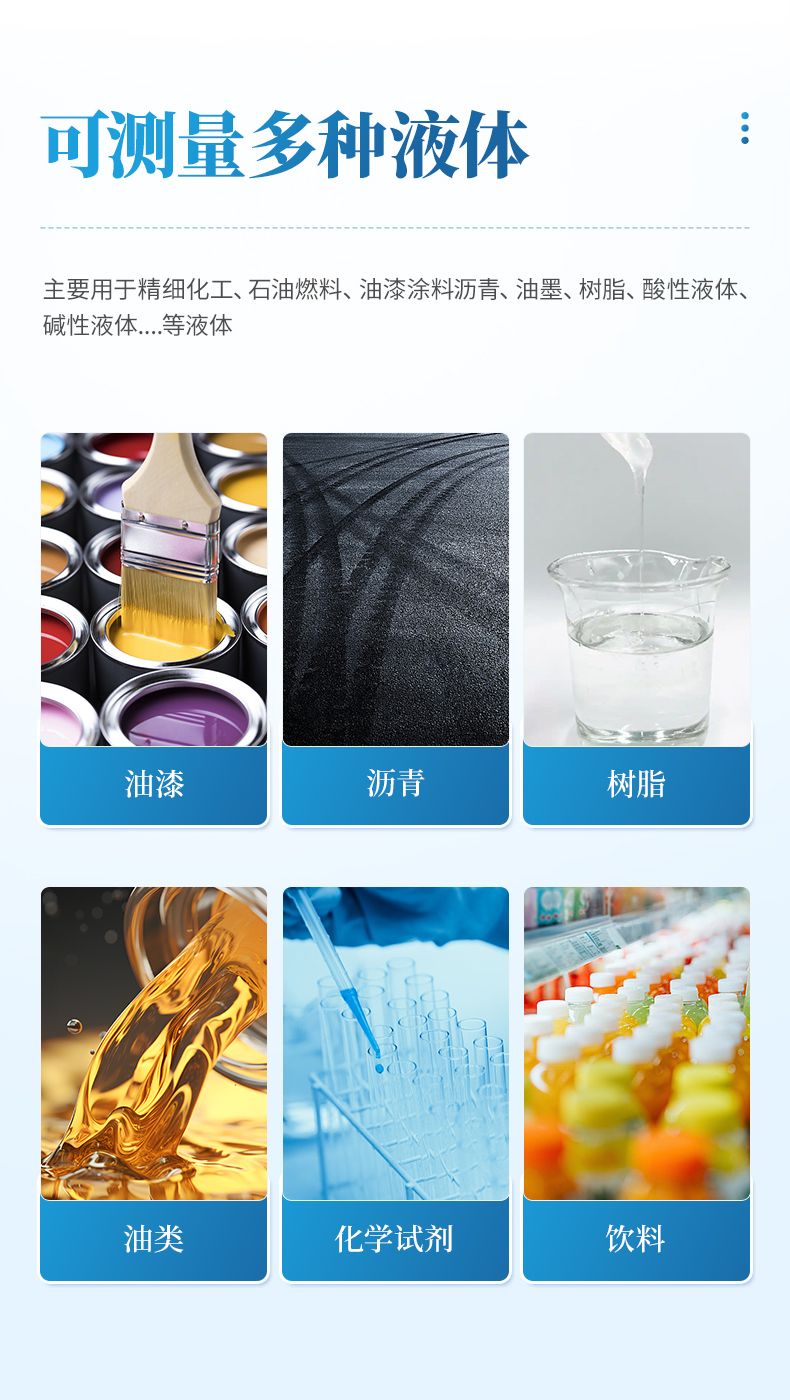 恒溫電子式液體密度計是通過結(jié)合帕爾帖控溫技術(shù)將樣品液體溫度控制在20℃,再由電磁引發(fā)U型管震蕩,通過震蕩頻率測算出樣品液體的密度。能夠測試大部分液體(高粘度以及氟化氫等會腐蝕玻璃的除外),正以實用、可靠、準確率高、測量精度高等優(yōu)點,廣泛應用于飲料食品、石油化工、檢驗檢疫、計量校準等分析領(lǐng)域里。