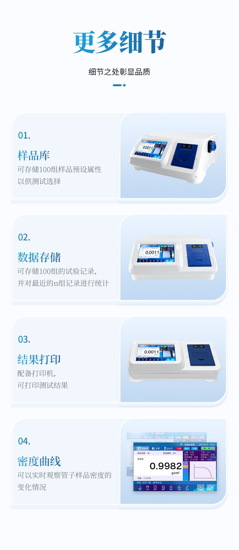 【產(chǎn)品簡介】"重復性g/cm3:±0.001;分辨率g/cm3:0.0001;測量范圍g/cm3:0.0000~1.9999"