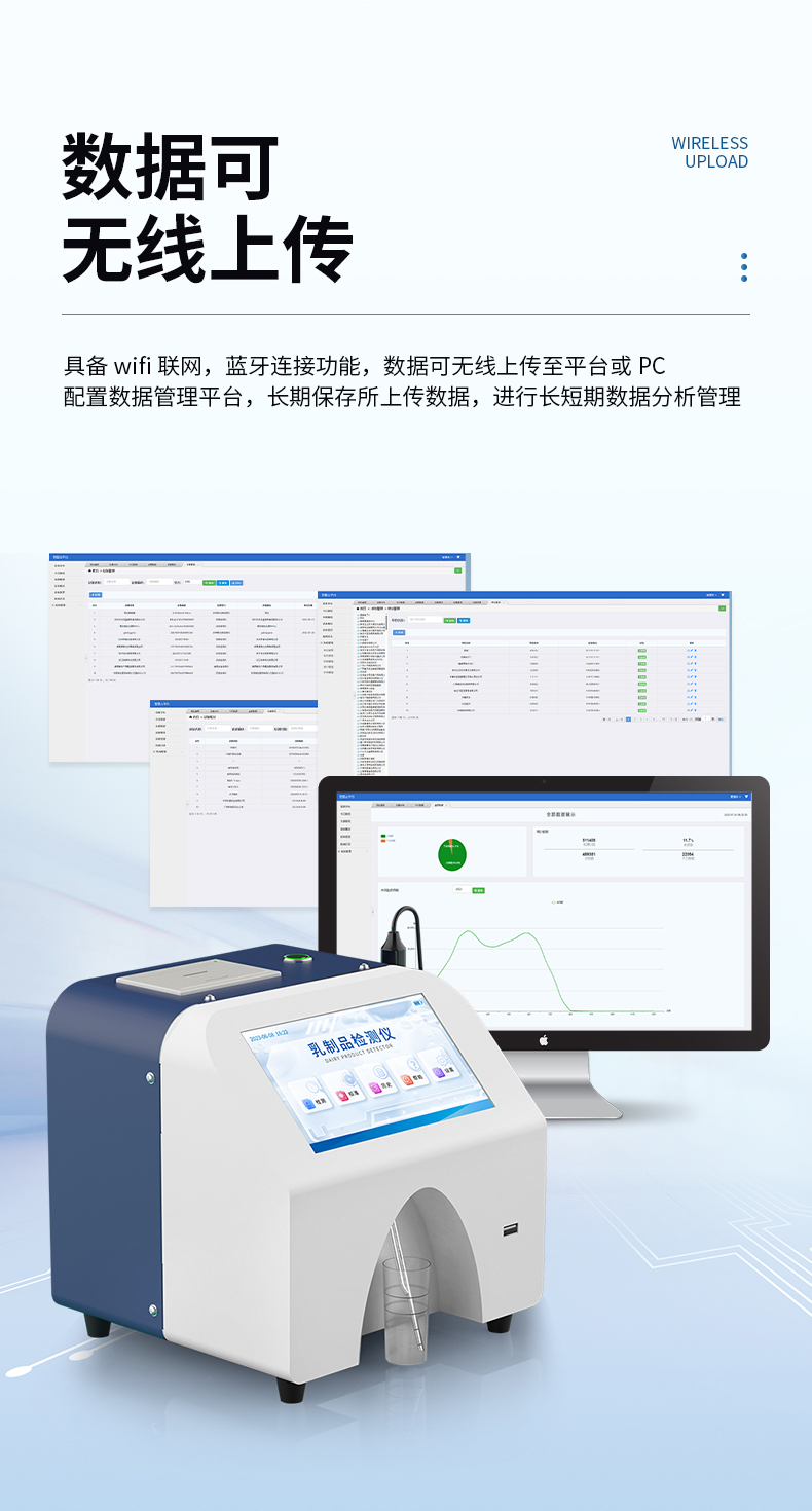 9、具備wifi聯(lián)網(wǎng),藍牙連接功能,數(shù)據(jù)可無線上傳至平臺或PC