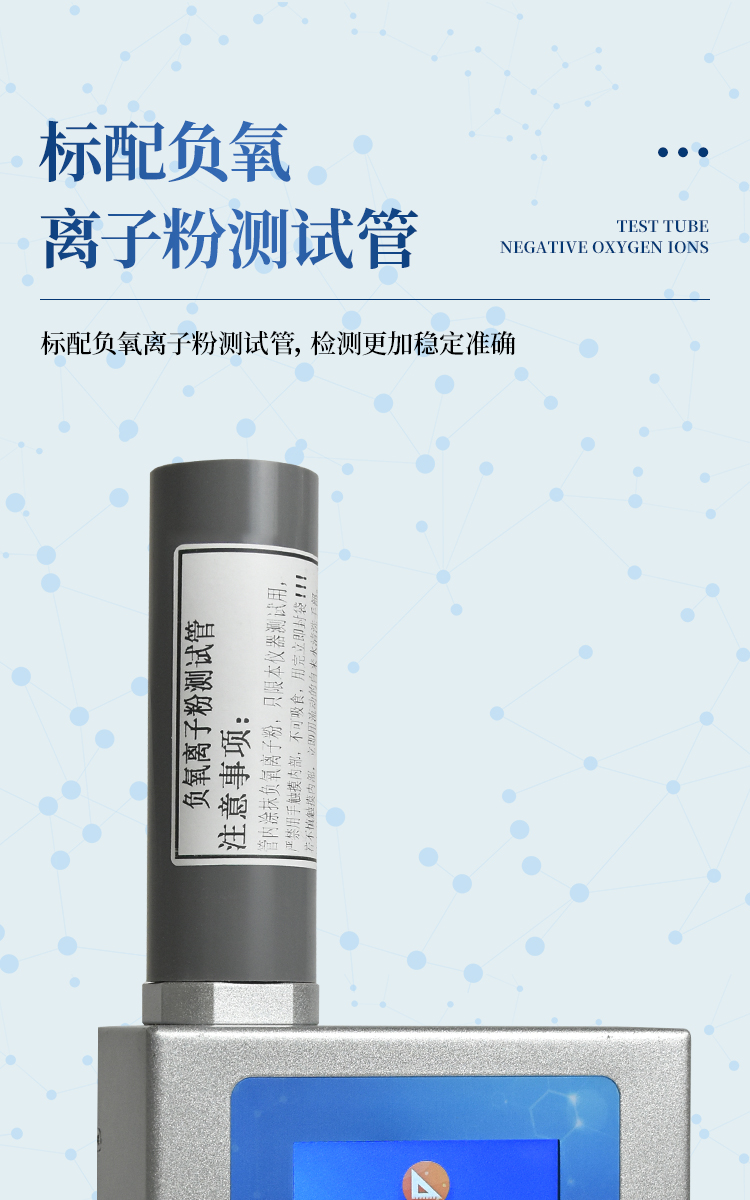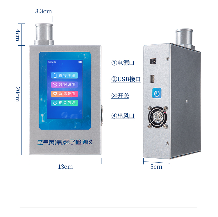 1、屏幕顯示:5.0英寸電容觸摸屏,800*480高分辨率,實時顯示負(fù)(氧)離子測量結(jié)果;