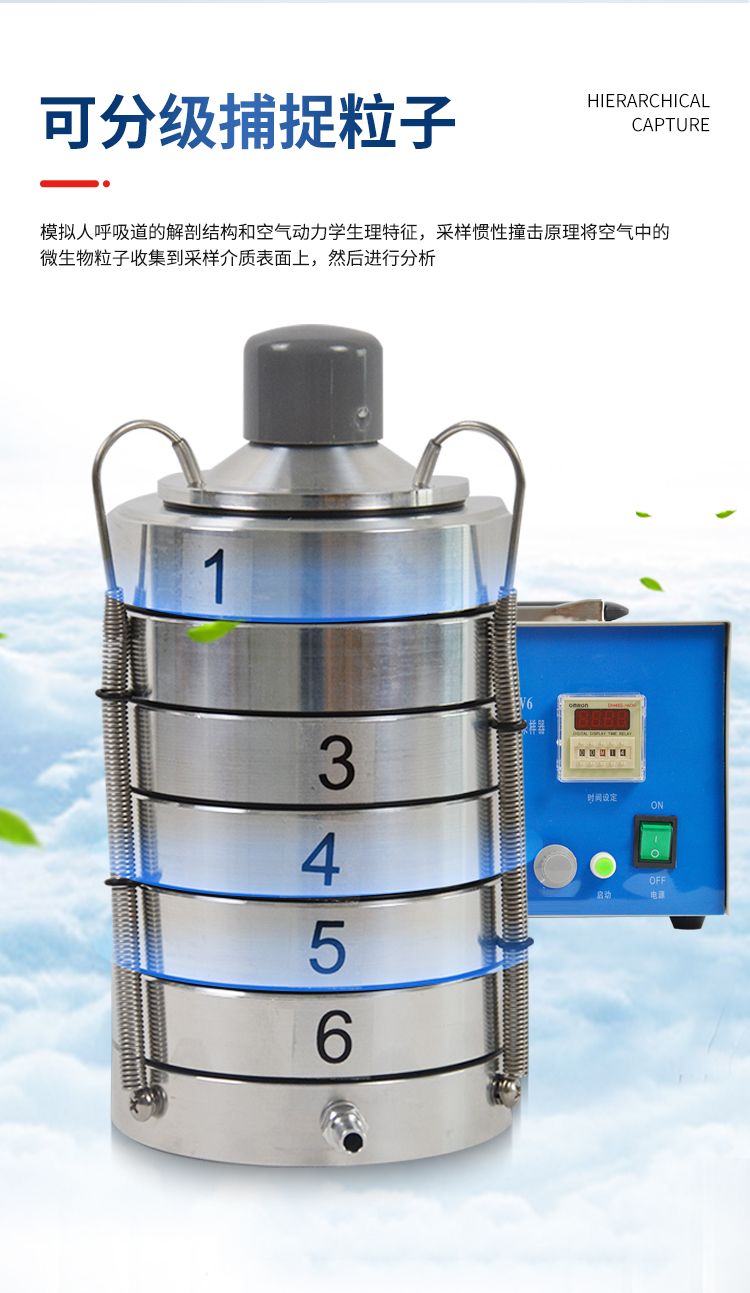 【產(chǎn)品簡(jiǎn)介】由六個(gè)撞擊器組合成一體,每—級(jí)實(shí)際是一個(gè)單級(jí)采樣器,利用6次反復(fù)撞擊原理,測(cè)量范圍捕獲率: >98%;