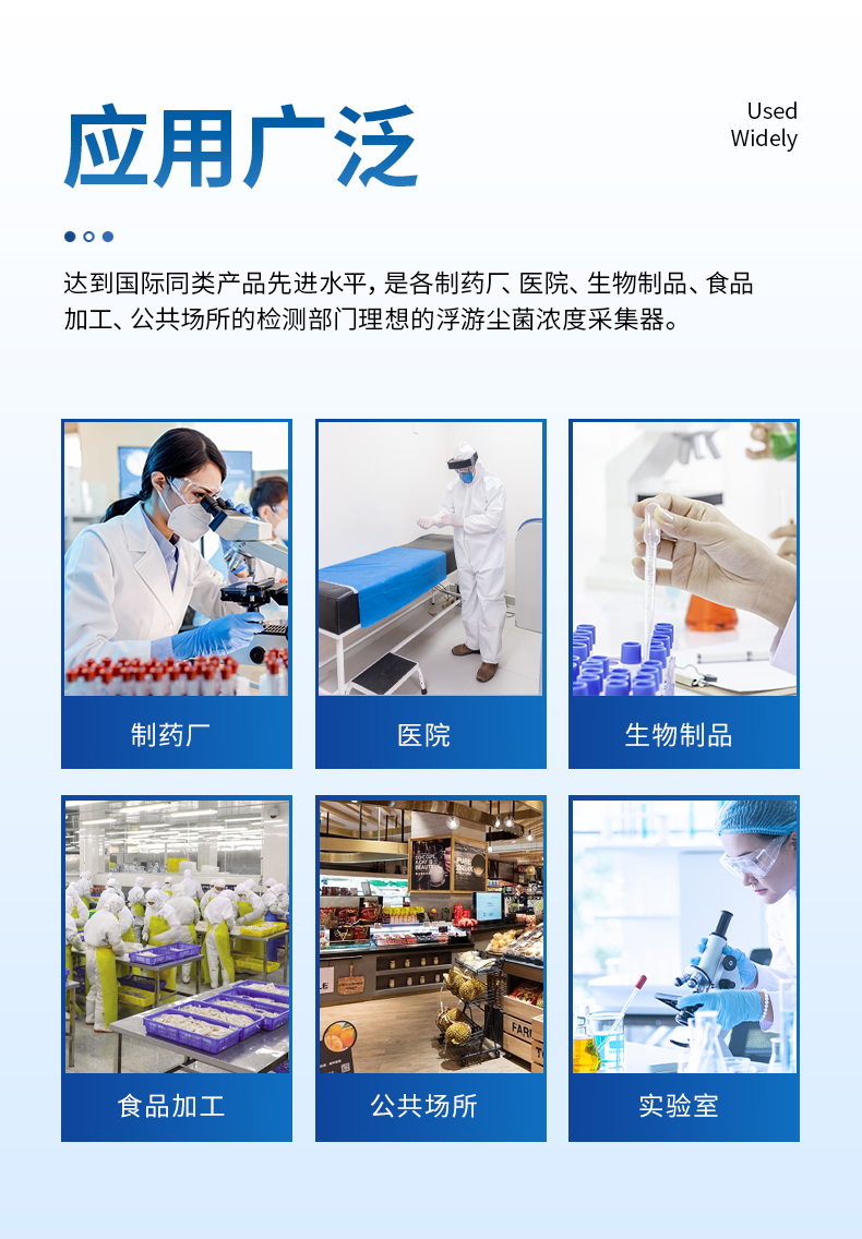 本儀器結(jié)構(gòu)獨特新穎,分上下兩部分,上部分采集口和采樣座及氣泵,下部分控制器及電池。采樣口和外殼采用優(yōu)質(zhì)航空鋁制造,表面閉孔處理,便于使用前的滅菌消毒。本儀器功能強(qiáng)大,采樣量大,收集效率高,性能穩(wěn)定,操作簡便,達(dá)到國際同類產(chǎn)品先進(jìn)水平,是各制藥廠、醫(yī)院、生物制品、食品加工、公共場所的檢測部門理想的浮游塵菌濃度采集器。