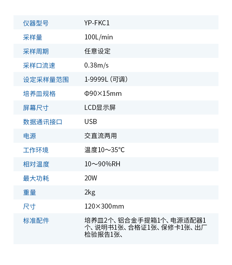標(biāo)準(zhǔn)配件:采樣蓋1個,培養(yǎng)皿2個,防塵罩1個,熱敏打印紙1卷,電源適配器,說明書,合格證
