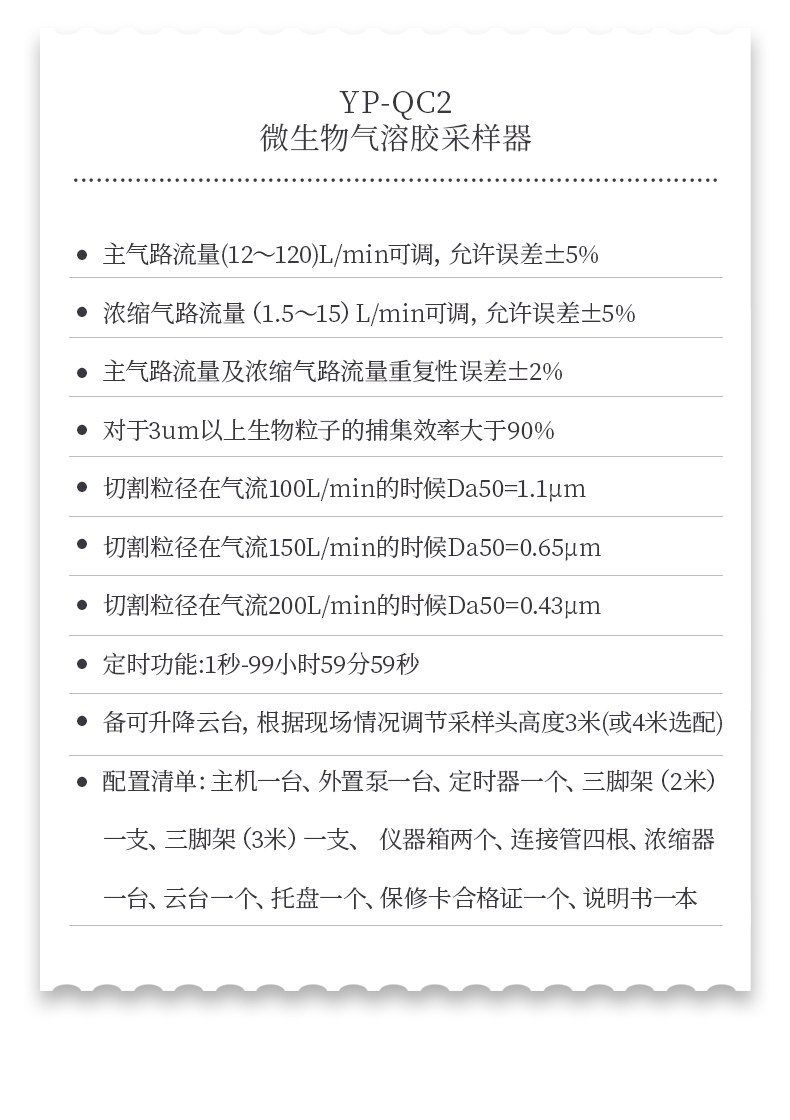 本產品符合標準《GB/T 18204.5-2013 公共場所衛(wèi)生檢驗方法 第5部分:集中空調通風系統(tǒng)》和衛(wèi)生行業(yè)標準《WS 394-2012 公共場所集中空調通風系統(tǒng)衛(wèi)生規(guī)范》要求,采集集中空調送風,檢測其中的嗜肺軍團菌。采集流量大,使需要的粒子短時間濃縮到采樣器中,避免長時間采樣帶來的生物活性損失,提高采樣器的現場實用性。