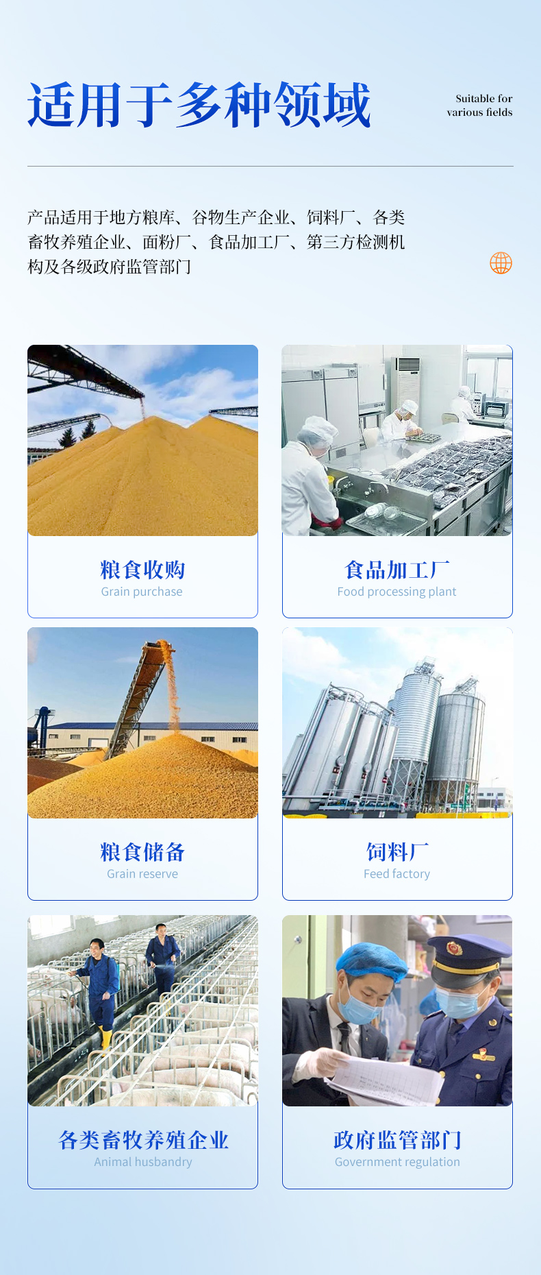 YP-L02型真菌毒素快速檢測(cè)儀采用熒光定量快速檢測(cè)原理,主要檢測(cè)糧油谷物飼料中真菌毒素含量,包括黃曲霉毒素B1、黃曲霉毒素M1、玉米赤霉烯酮、嘔吐毒素、伏馬毒素等等,檢測(cè)樣品涵蓋糧食谷物(大米、玉米、小麥、大麥、高粱等)及其制品、飼料及其原料、食用油脂、牛奶及其制品等;樣品前處理簡(jiǎn)單,整個(gè)檢測(cè)過(guò)程檢測(cè)12min,產(chǎn)品適用于地方糧庫(kù)、谷物生產(chǎn)企業(yè)、飼料廠、各類(lèi)畜牧養(yǎng)殖企業(yè)、面粉廠、食品加工廠、第三方檢測(cè)機(jī)構(gòu)及各級(jí)政府監(jiān)管部門(mén)。