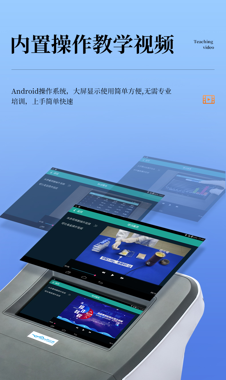 7、使用簡(jiǎn)單方便:儀器內(nèi)置檢測(cè)項(xiàng)目操作視頻,無(wú)需專(zhuān)業(yè)培訓(xùn),邊觀看儀器內(nèi)置操作視頻,邊做實(shí)驗(yàn),上手簡(jiǎn)單快速。