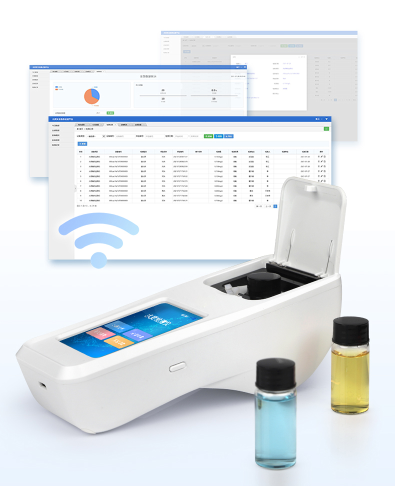 ②配置云監(jiān)控平臺(tái),檢測(cè)結(jié)果可直接無線傳至平臺(tái),進(jìn)行水質(zhì)長(zhǎng)短期分析,輔助管理。