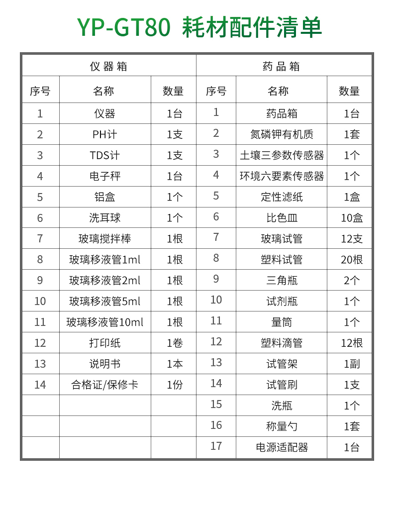 合格證/保修卡 | 份 | 1 | 試管刷 | 支 | 1 |