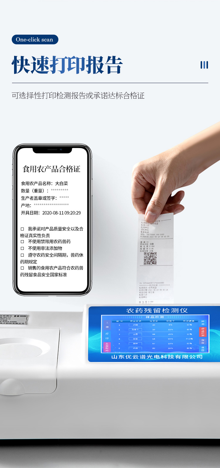 檢測標準:依據(jù)國家標準方法(GB/T5009.199-2003)以及世界衛(wèi)生組織WHO、世界糧農(nóng)組織FAO殘留農(nóng)藥檢測標準、世界環(huán)境保護局EPA參照攝入量等要求來設計。采用酶抑制率比色法對水果、蔬菜等農(nóng)林產(chǎn)品中有機磷和氨基甲酸酯類農(nóng)藥含量進行快速準確的檢測。