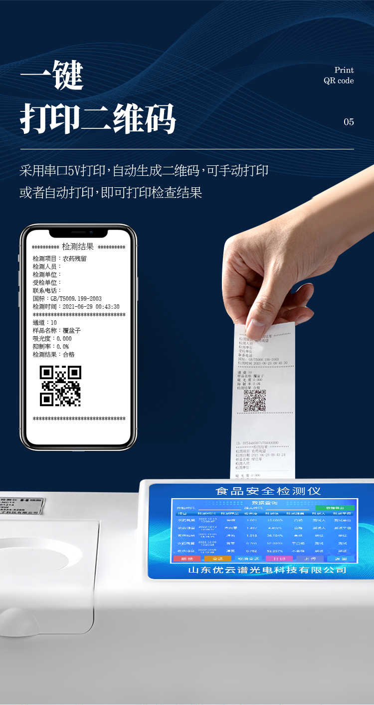 5、配備新一代嵌入式熱敏打印機(jī),可選擇手動(dòng)打印或者自動(dòng)打印,檢測(cè)完成可自動(dòng)打印檢測(cè)報(bào)告和二維碼。