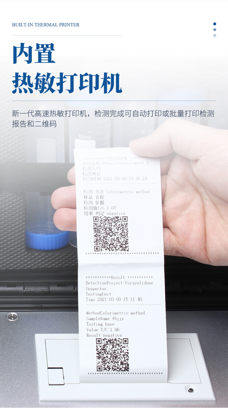 12、新一代高速熱敏打印機,檢測完成可自動打印或批量打印檢測報告和二維碼。