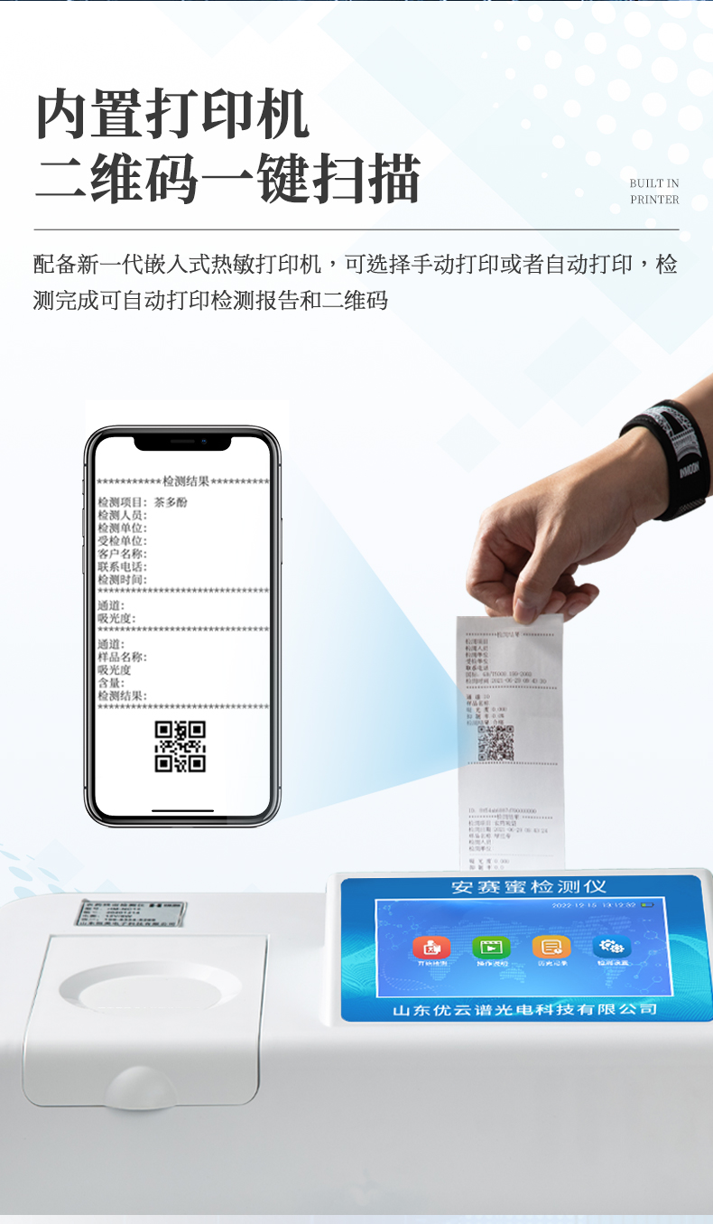 5、配備新一代嵌入式熱敏打印機(jī),可選擇手動(dòng)打印或者自動(dòng)打印,檢測完成可自動(dòng)打印檢測報(bào)告和二維碼。