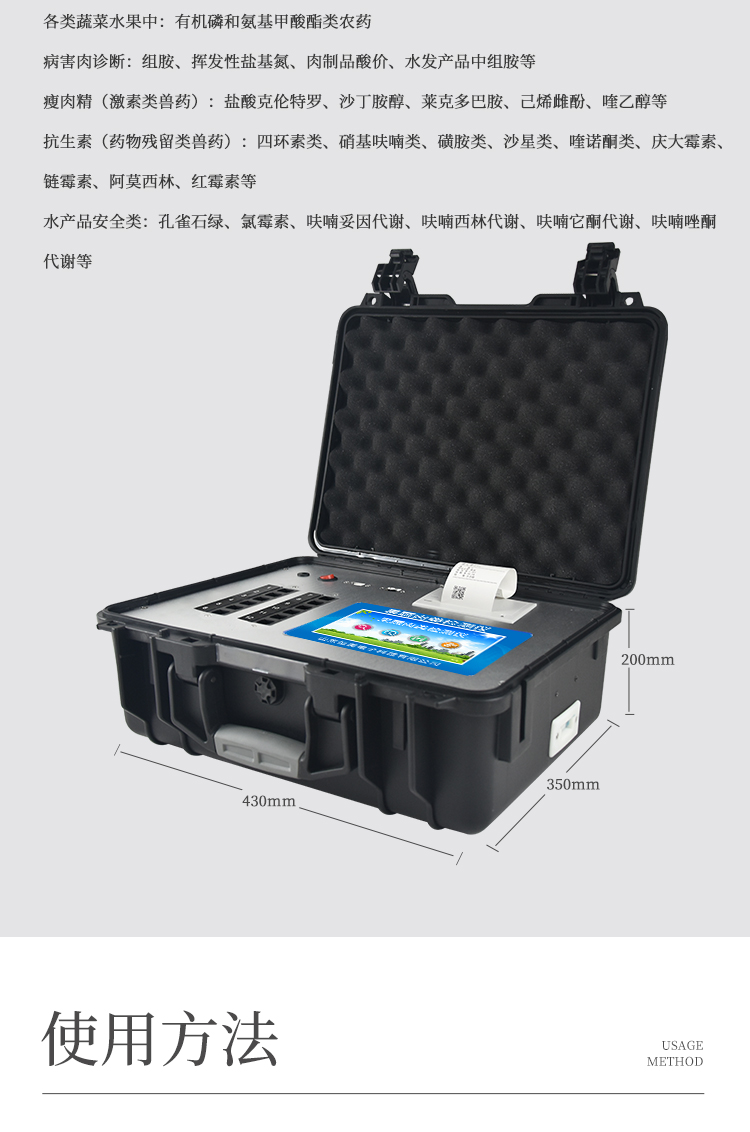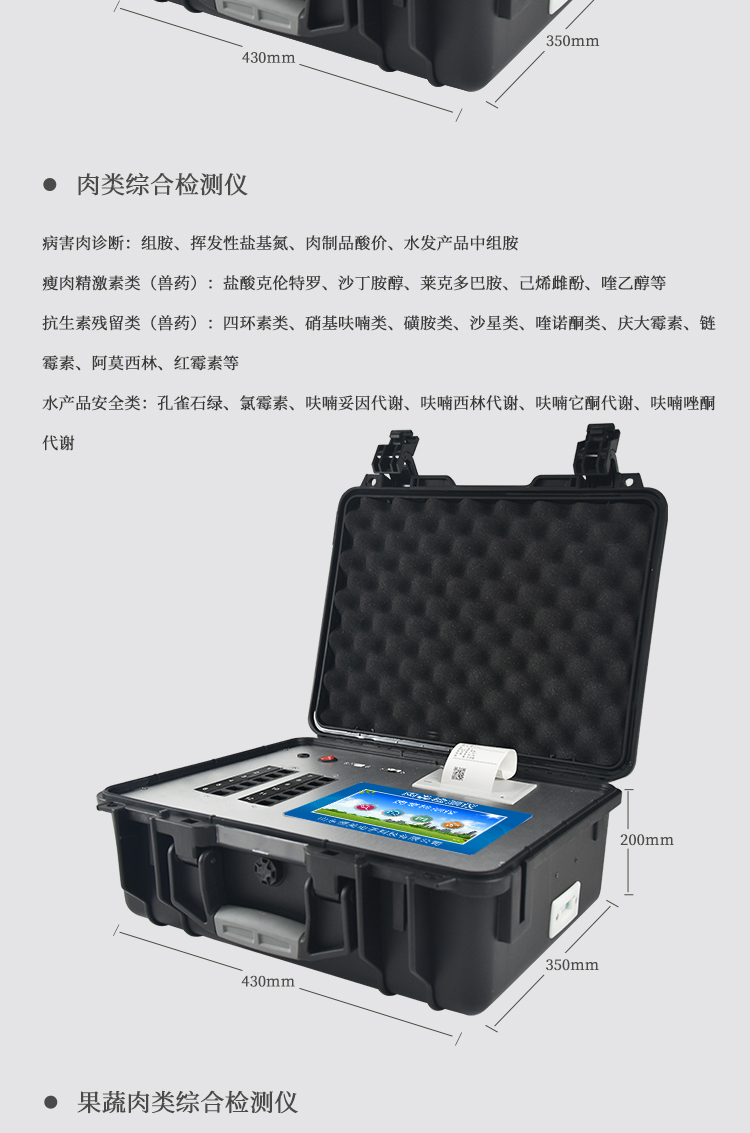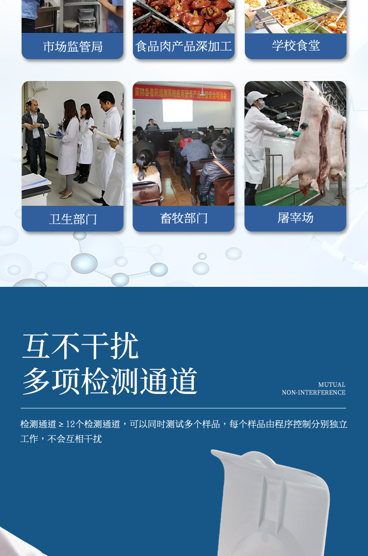 該多功能食品安全檢測儀為集成一體化食品安全快速檢測分析設(shè)備,廣泛應(yīng)用于市場監(jiān)管局、食品肉產(chǎn)品深加工企業(yè)、學(xué)校食堂、衛(wèi)生部門、畜牧部門、屠宰場、檢驗(yàn)檢疫部門等單位使用。
