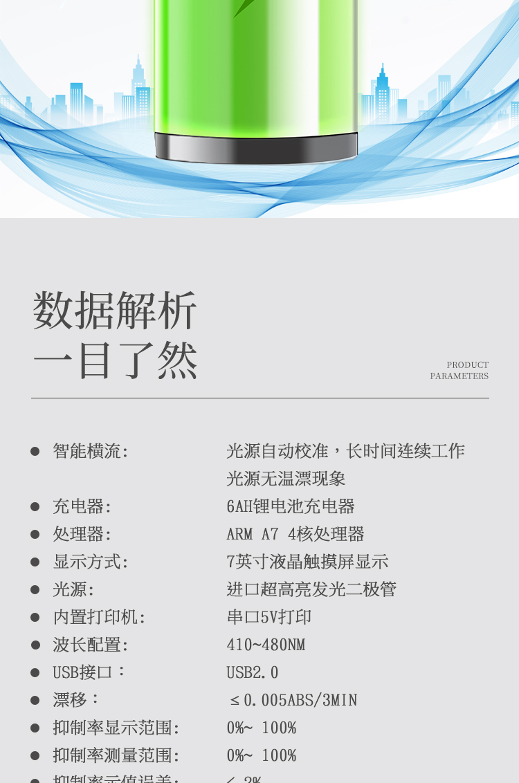5、智能恒流穩(wěn)壓,光強(qiáng)自動(dòng)校準(zhǔn),長時(shí)間連續(xù)工作光源無溫漂現(xiàn)象。