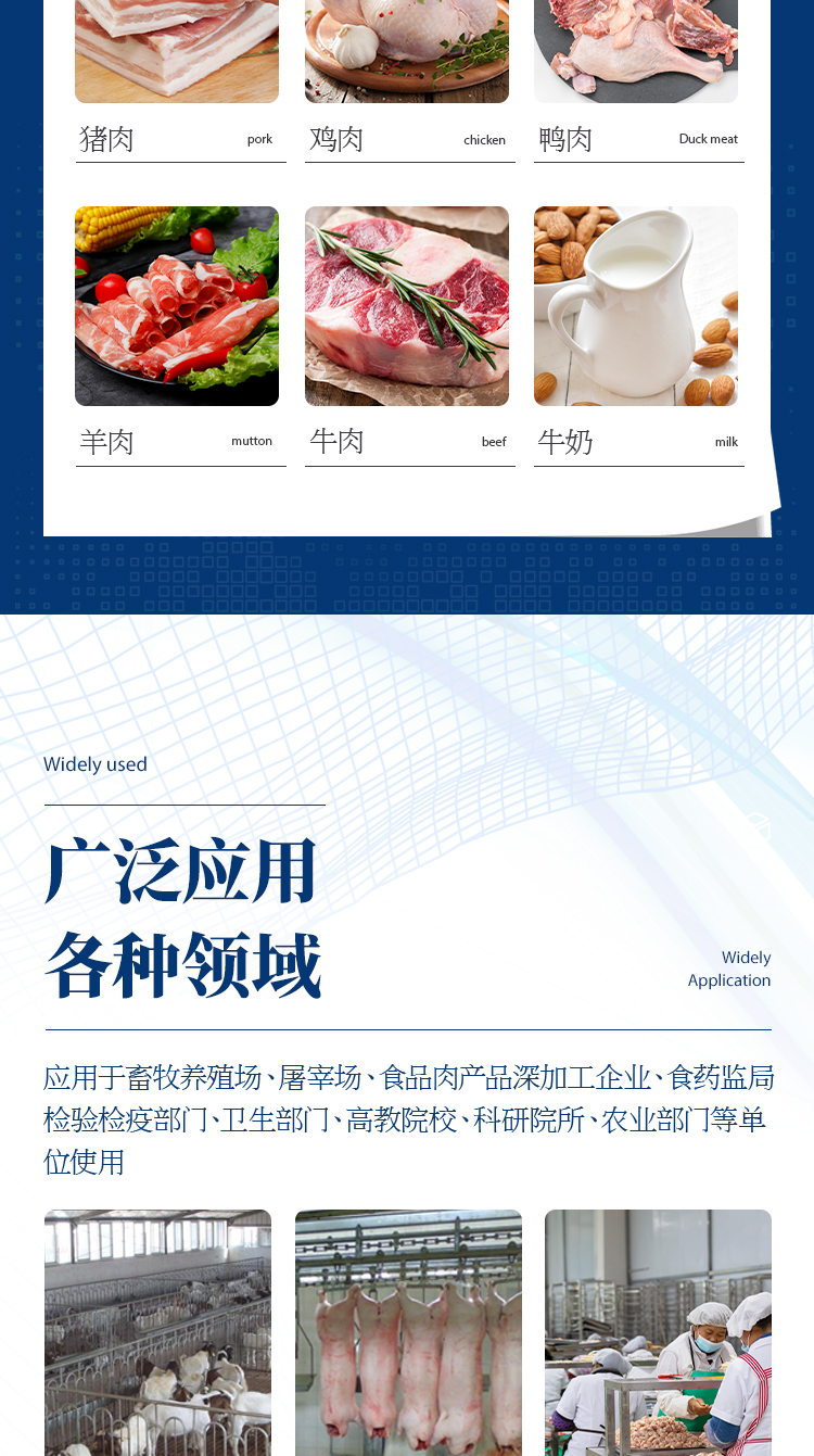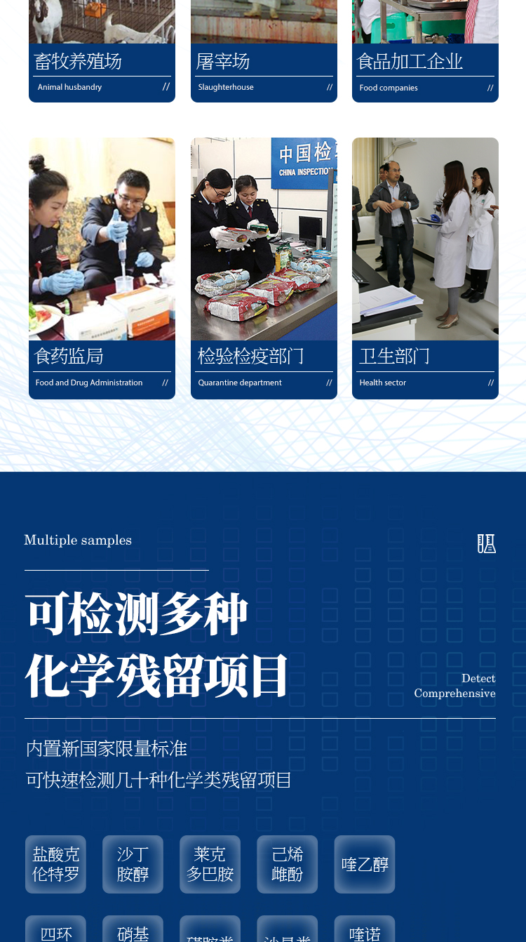 抗生素殘留檢測儀廣泛應用于食藥監(jiān)局、衛(wèi)生部門、農業(yè)部門、養(yǎng)殖場、屠宰場、食品肉產品深加工企業(yè)、檢驗檢疫部門等單位使用。
