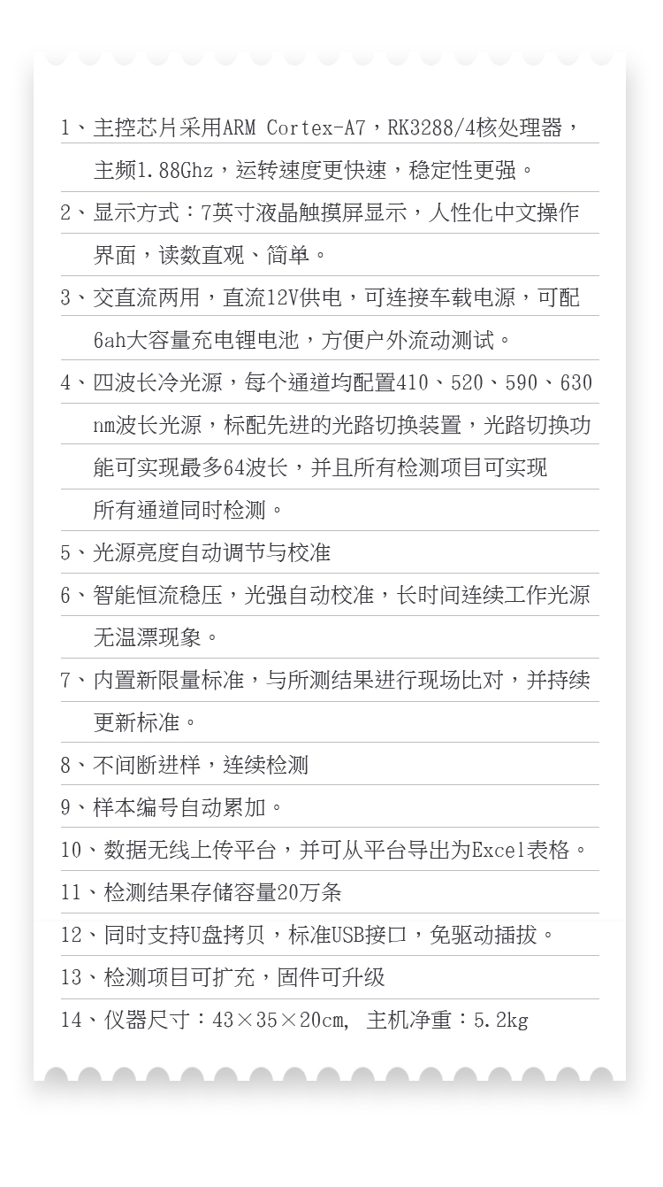 5、智能恒流穩(wěn)壓,光強自動校準,長時間連續(xù)工作光源無溫漂現(xiàn)象。。