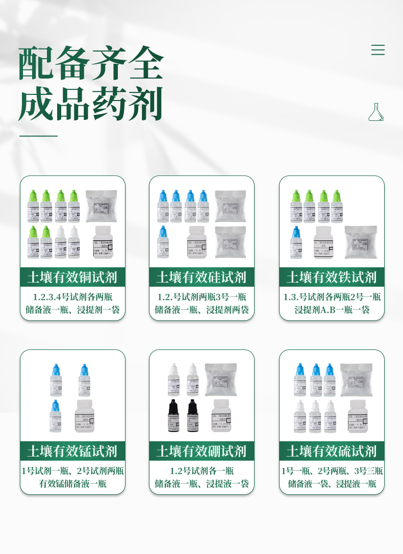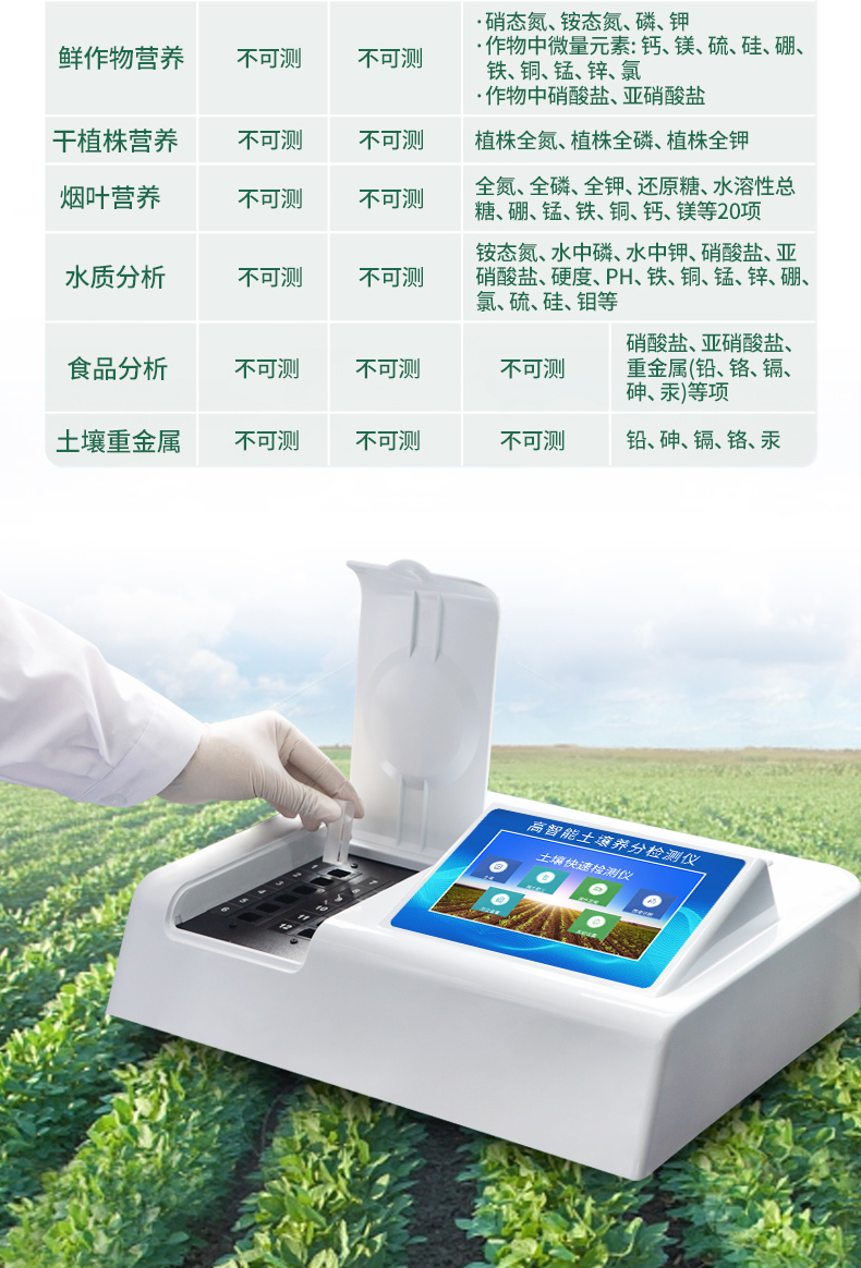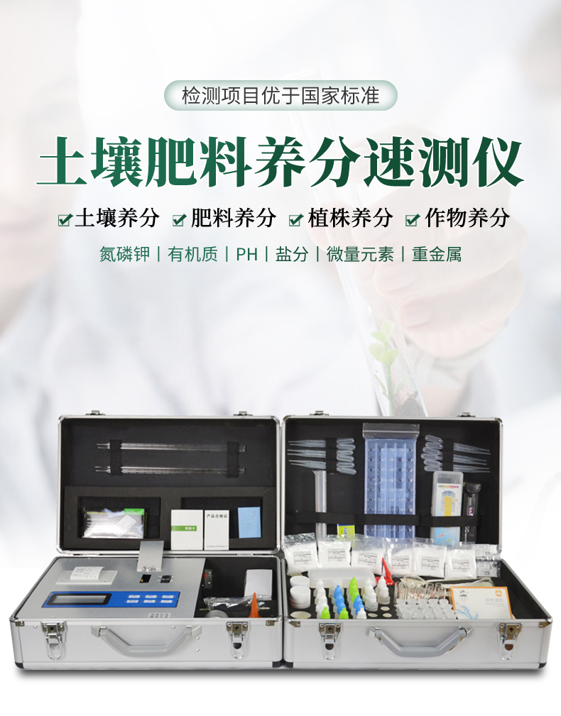 配套齊全:土壤養(yǎng)分速測儀該儀器集藥、器、儀為一體,攜帶方便,相當于一個小型實驗室。適于農業(yè)服務部門或農資經銷商、肥料廠商測土施肥和鑒別肥料真假。