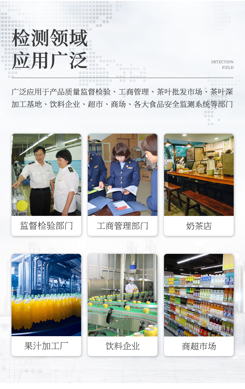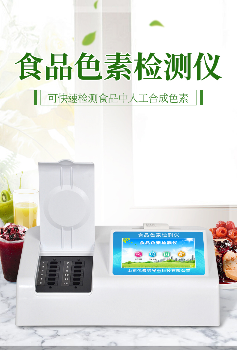 色素檢測儀可快速定量檢測食品中人工合成色素檸檬黃、日落黃、胭脂紅、莧菜紅、誘惑紅、亮藍、赤蘚紅的含量。