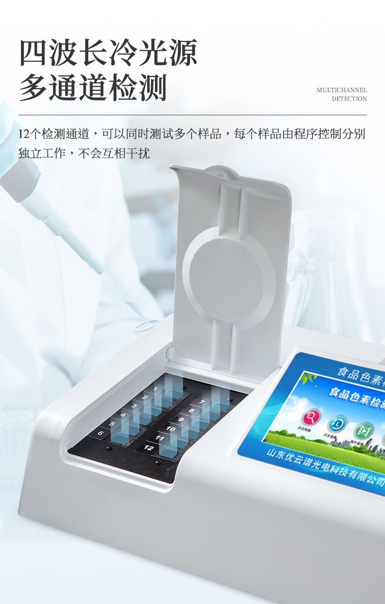 4、四波長冷光源,≥12個檢測通道,每個通道均配置410、520、590、630nm波長光源,標配先進的光路切換裝置,專利光路切換功能可實現(xiàn)最多64波長,并且所有檢測項目可實現(xiàn)所有通道同時檢測。