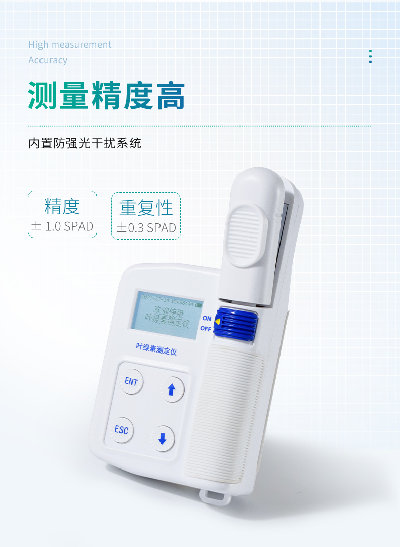 2.測(cè)量精度高(精度:± 1.0 SPAD,重復(fù)性:±0.3 SPAD) ,,內(nèi)置防強(qiáng)光干擾系統(tǒng)