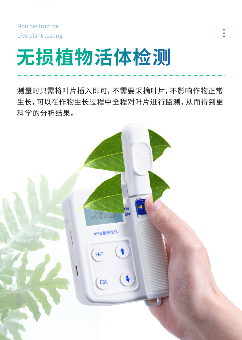 1.快速無損植物活體檢測(cè),測(cè)量時(shí)只需將葉片插入即可,不需要采摘葉片,不影響作物正常生長(zhǎng),可以在作物生長(zhǎng)過程中全程對(duì)葉片進(jìn)行監(jiān)測(cè),從而得到更科學(xué)的分析結(jié)果