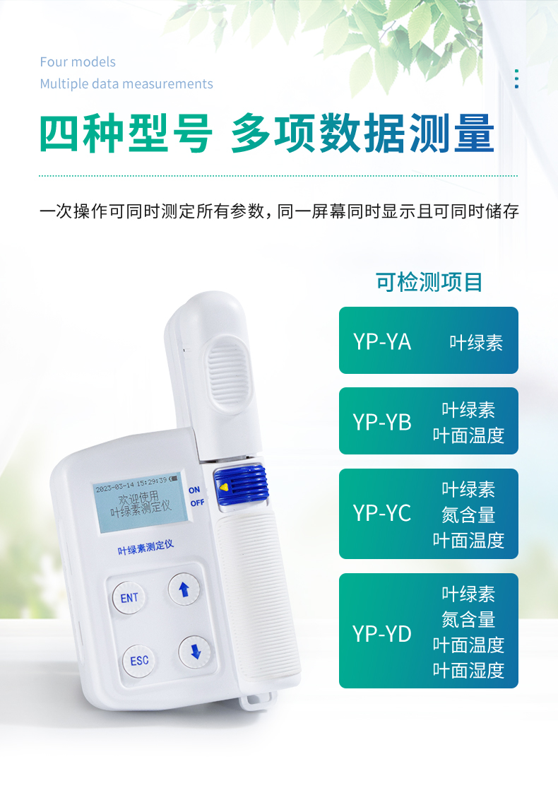 1.檢測項目:葉綠素含量、氮含量、葉面溫度、葉面濕度