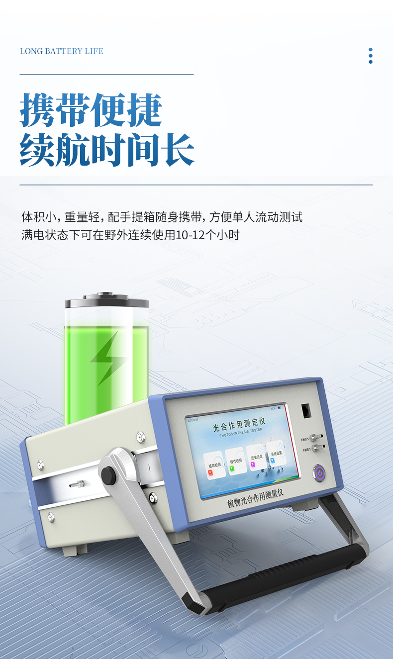 GH1植物光合作用測定儀是一款檢測人工氣候室、溫室、大棚、大田等植物的活體葉片光合作用的實驗儀器,測定內(nèi)容包括空氣CO2濃度、環(huán)境溫濕度、葉室溫濕度、葉面溫度、大氣壓力、光合有效輻射(PAR)、葉片光合速率(Pn)、氣孔導(dǎo)度(Gs)、葉片蒸騰速率(Tr)、胞間CO2濃度(Ci)、水分利用率(WUE)、呼吸速率(Rd)、蒸騰比(TR)共15項參數(shù),可用于植物生長生理、光合生理、脅迫生理研究等科學(xué)研究,植物光合作用測定儀適用于農(nóng)業(yè)科研、教學(xué)、園藝、草業(yè)、林業(yè)以及更廣泛的領(lǐng)域。