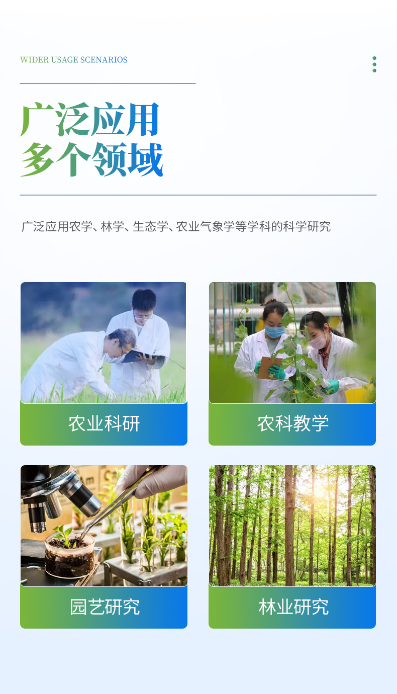 植物蒸騰速率是指水分通過植物體內(nèi)時,經(jīng)過植物體表(主要是葉片)以氣體的方式散發(fā)到大氣中的速度。植物的蒸騰作用能產(chǎn)生的蒸騰拉力,蒸騰拉力是植物被動吸水與轉(zhuǎn)運(yùn)水分的主要動力,這對高大的喬木尤為重要;蒸騰作用可以促進(jìn)木質(zhì)部汁液中物質(zhì)的運(yùn)輸,土壤中的礦質(zhì)鹽類和根系合成的物質(zhì)可隨著水分的吸收和集流而被運(yùn)輸和分布到植物體各部分去;蒸騰作用還可以降低植物體的溫度,防止葉片被灼傷,這是因為水的氣化熱高,在蒸騰過程中可以散失掉大量的輻射熱。蒸騰作用的正常進(jìn)行有利于CO2的同化,這是因為葉片進(jìn)行蒸騰作用時,氣孔是開放的,開放的氣孔便成為CO2進(jìn)入葉片的通道。因此作物植物蒸騰速率測量儀對于農(nóng)業(yè)科研、教學(xué)、園藝研究、林業(yè)研究等具有重大意義。