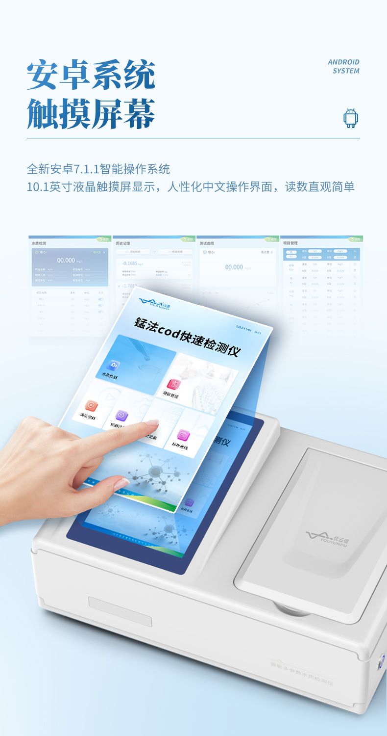 本儀器采用錳法測定水中的COD指標(biāo),又稱CODMn或高錳酸鹽指數(shù),兼具智能數(shù)據(jù)分析功能,圖表、列表顯示數(shù)據(jù),分析一目了然;高清晰度彩色液晶觸摸顯示屏,Android智能操作系統(tǒng),中文顯示界面,中英文鍵盤,人性化操作,使用更簡單。