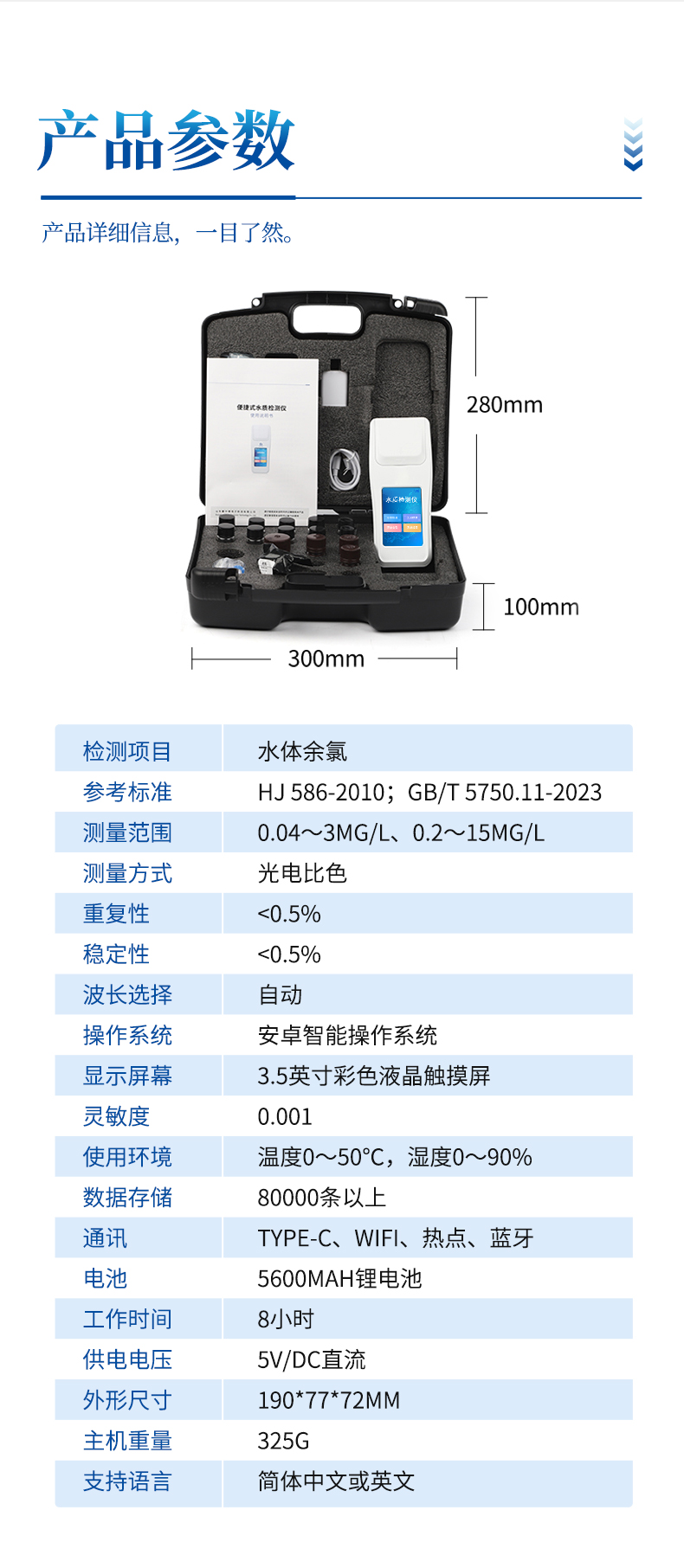 余氯:0.04~3mg/L,0.2~15mg/L;