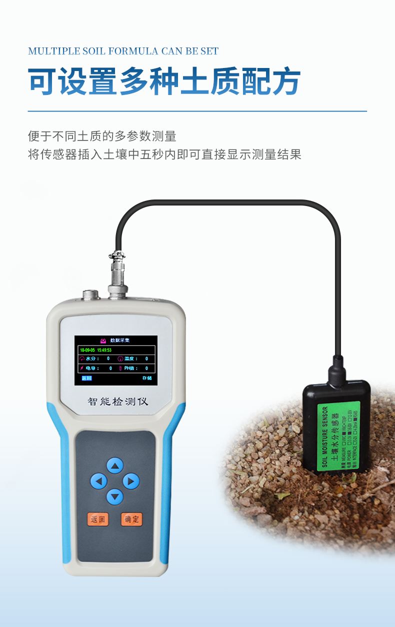 土壤多參數(shù)采用一體化結(jié)構(gòu)設(shè)計,可快速準確測量土壤中含水量,可對多處樣地、不同土壤深度的水分含量進行快速檢測和長期連續(xù)監(jiān)測。
