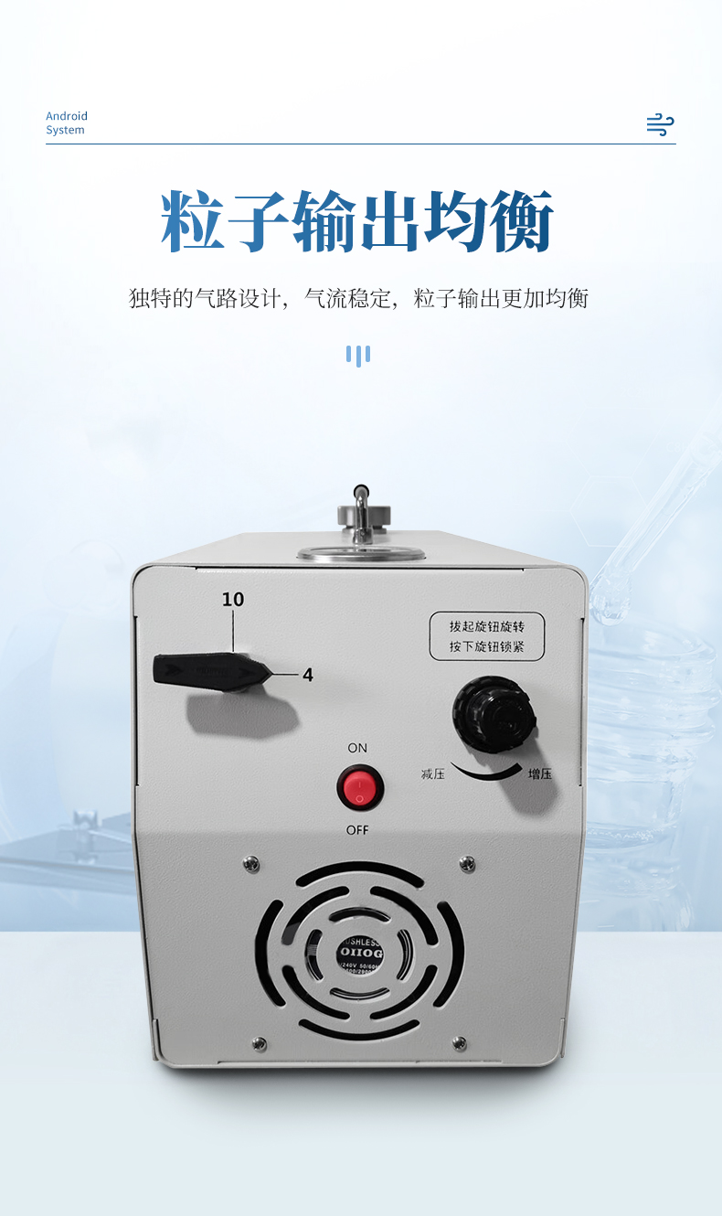 獨特的氣路設(shè)計,氣流穩(wěn)定,粒子輸出更加均衡;