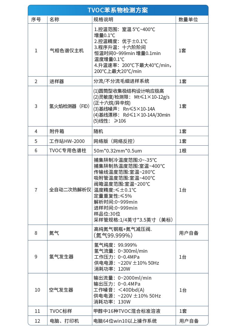 智能氣相色譜儀配置明細(xì)
