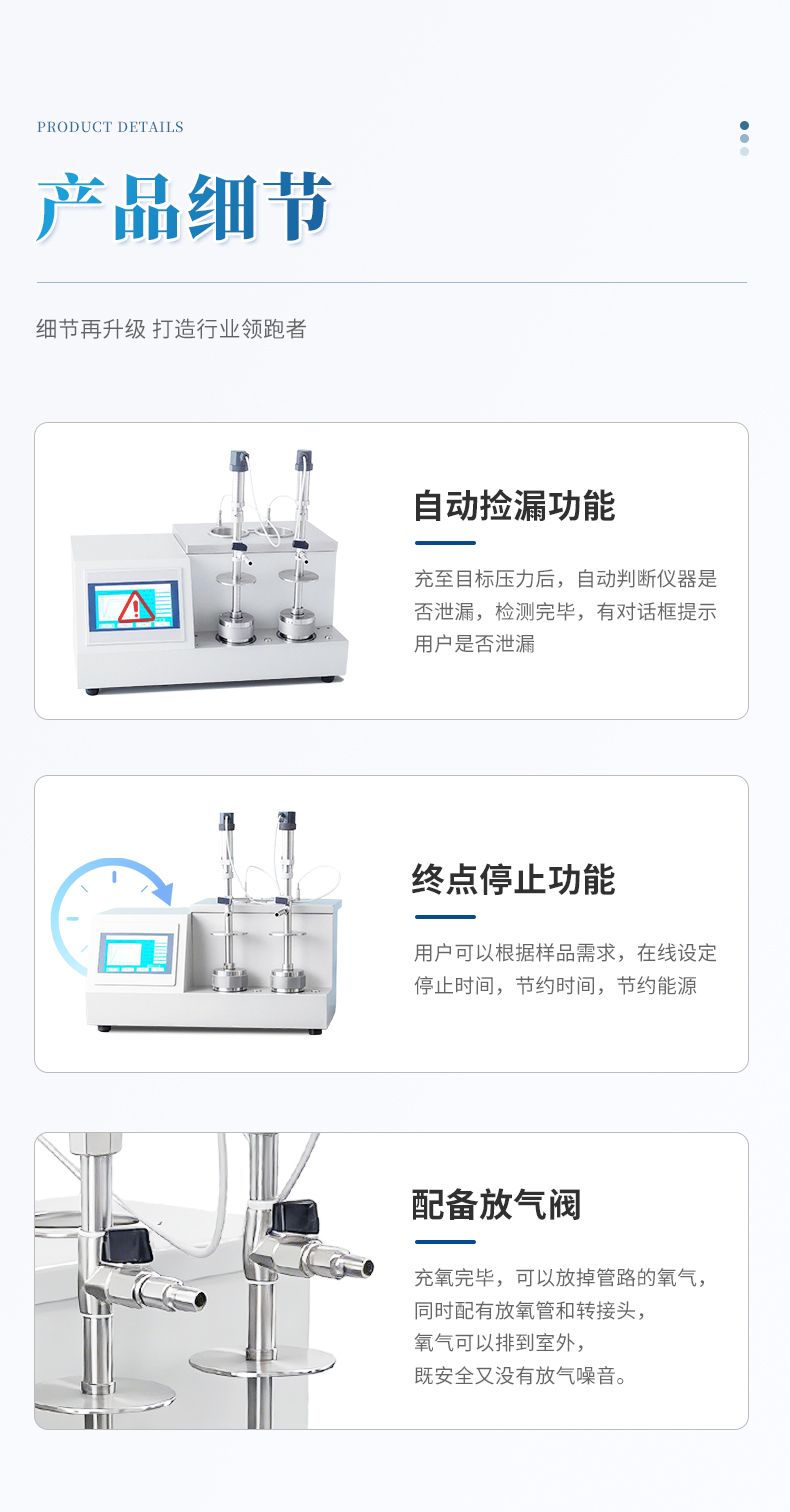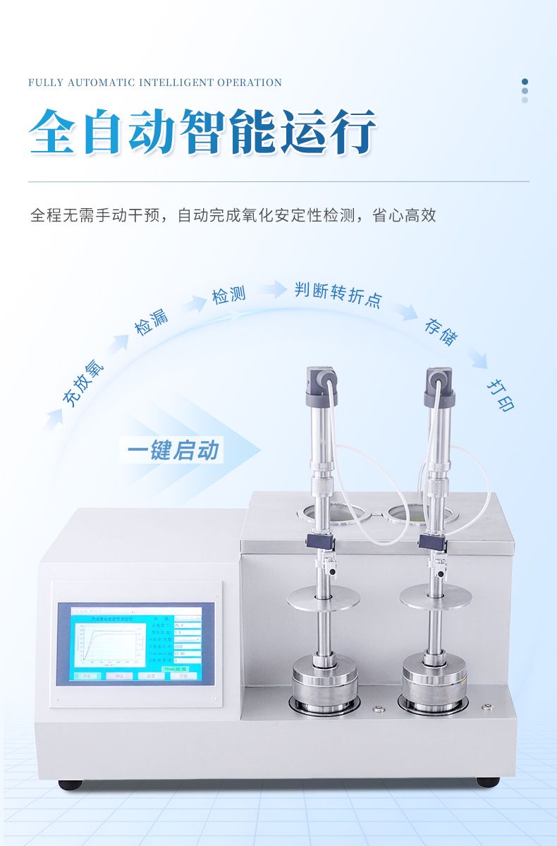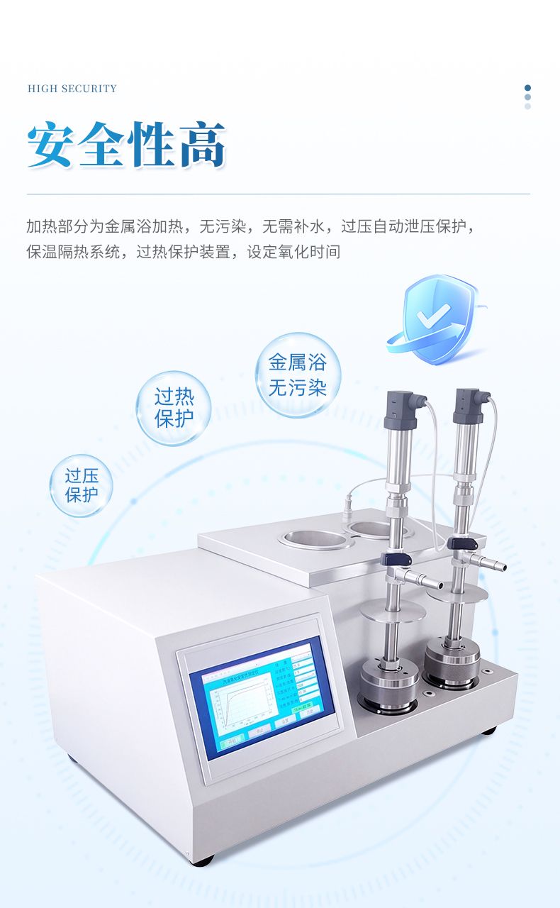 (5)儀器具有設定氧化時間功能,根據(jù)國家標準如果樣品出現(xiàn)緩慢氧化,到達設定時間后,儀器自動計算出該時間下的最高到最低壓力降,作為實驗數(shù)據(jù)。