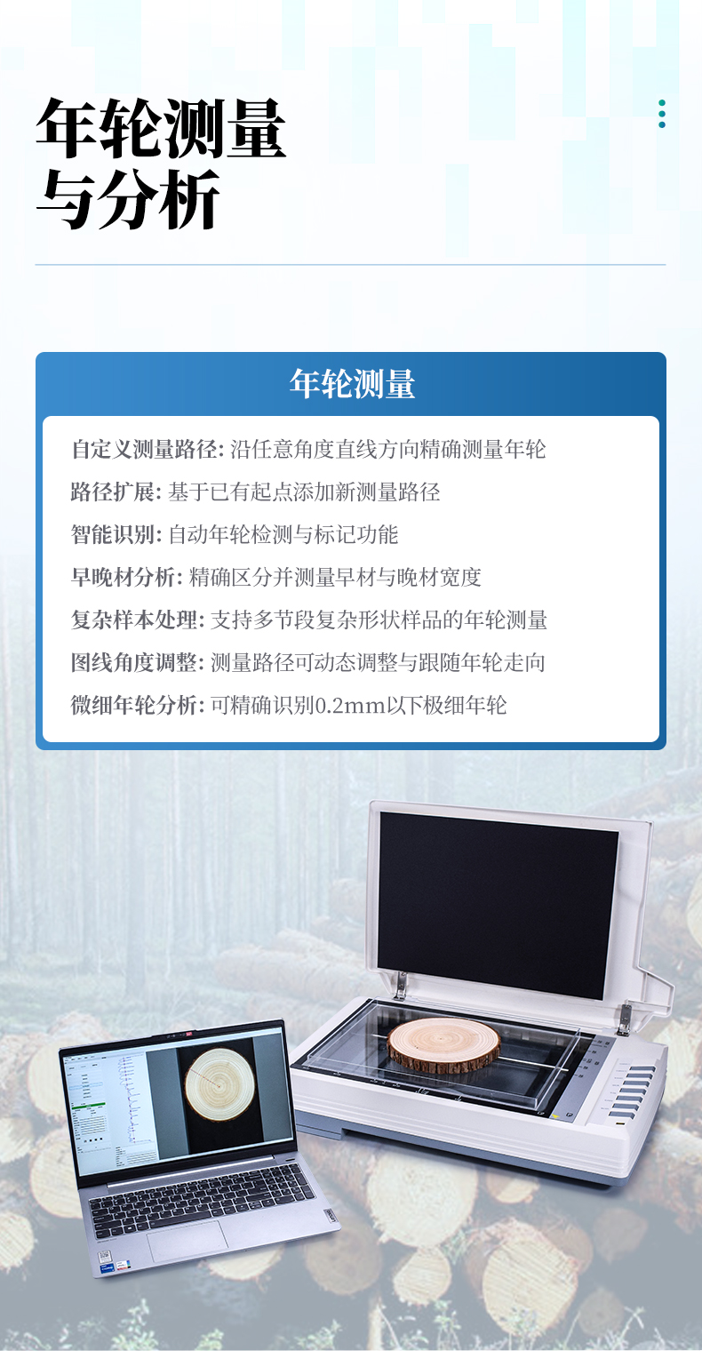 - 圖線角度調整:測量路徑可動態(tài)調整與跟隨年輪走向