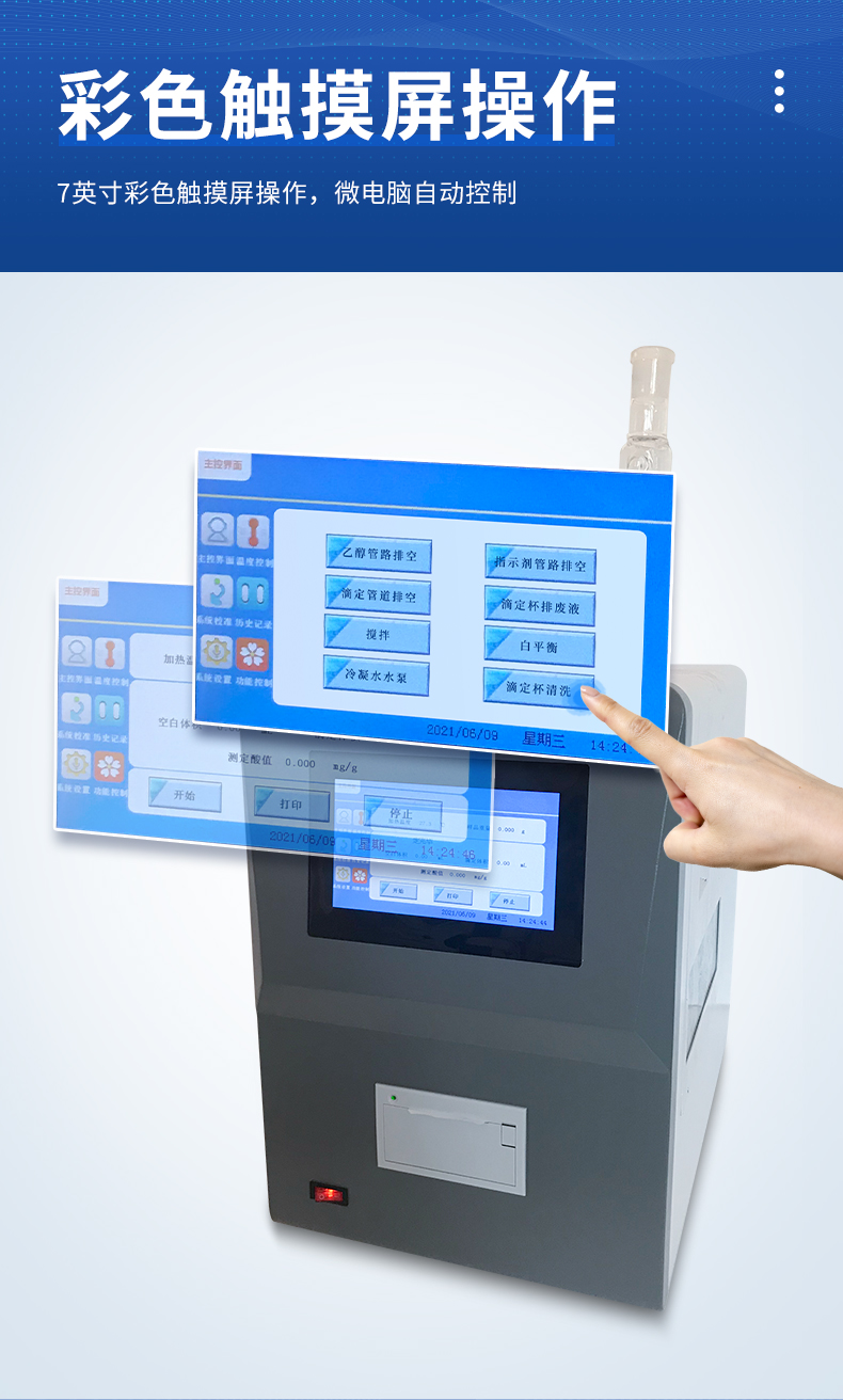 3、自動控制酸值滴定全過程,自動判斷顏色終點。
