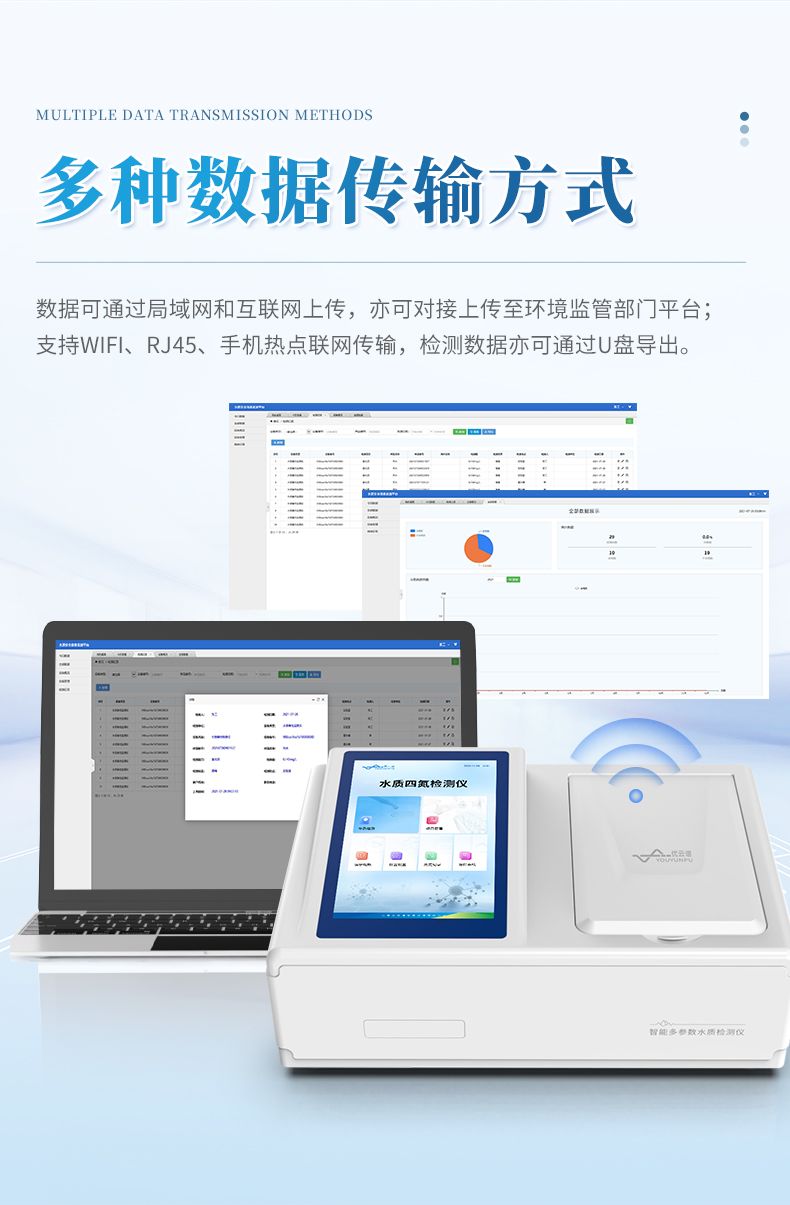 ②配置云監(jiān)控平臺,檢測結(jié)果可直接無線傳至平臺,進(jìn)行水質(zhì)長短期分析,輔助管理。