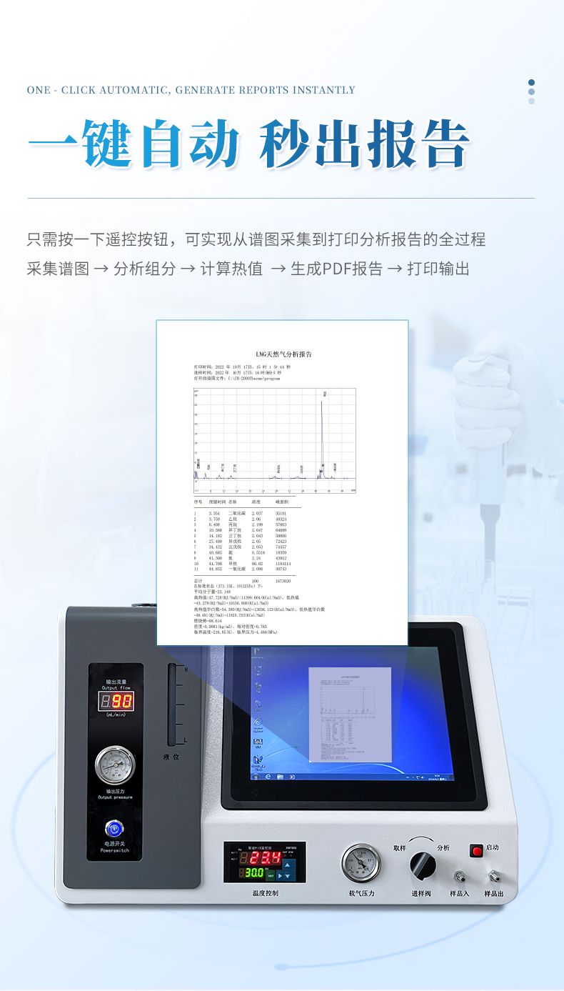 GC-R2燃氣分析儀(PC一體機)內置12寸顯示屏,屏幕上顯示分析結果和譜圖,可隨時隨地進行分析檢測,為客戶提供穩(wěn)定和便捷的操作體驗。